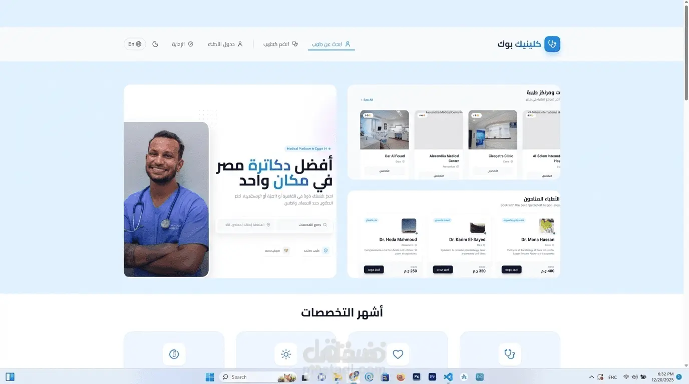 موقع لحجز خدمة طبية بلوحة تحكم وسيستم متكامل