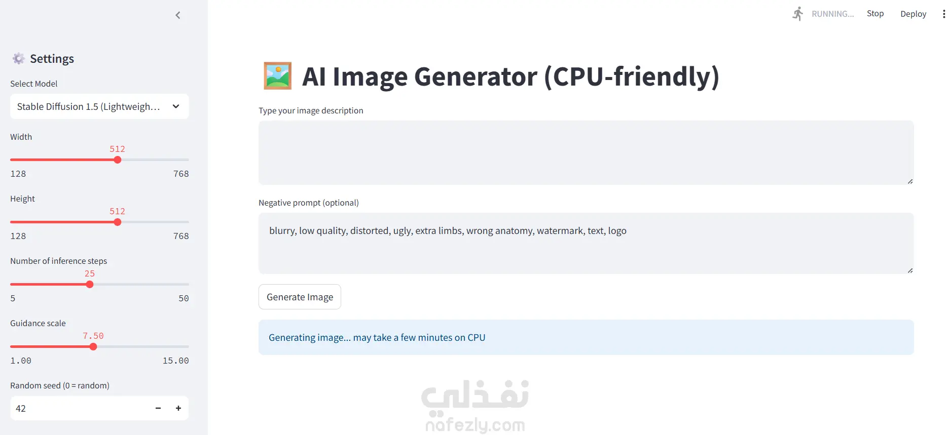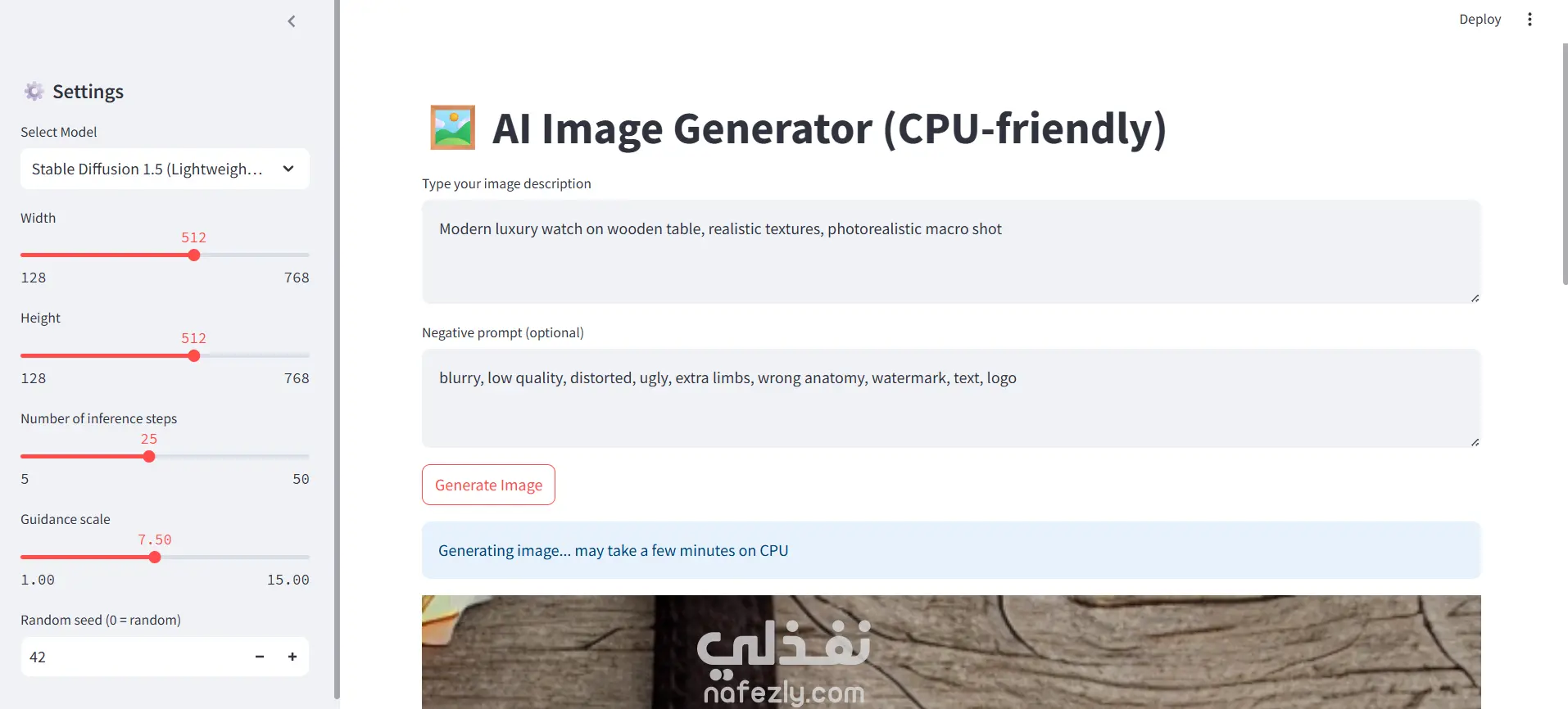 نظام إنشاء الصور التوليدي (المعتمد على نماذج الانتشار – Diffusion Models) هو نظام ذكاء اصطناعي متقدم يقوم بإنشاء صور عالية الجودة انطلاقًا من وصف نصي (Text Prompt). يعتمد النظام على أحدث تقنيات النماذج التوليدية القائمة على مبدأ "الانتشار العكسي"، حيث يبدأ بضوضاء عشوائية ثم يقوم بتحسينها تدريجيًا عبر عدة خطوات حتى تتحول إلى صورة واضحة ومتناسقة تعكس الوصف النصي المُدخل.