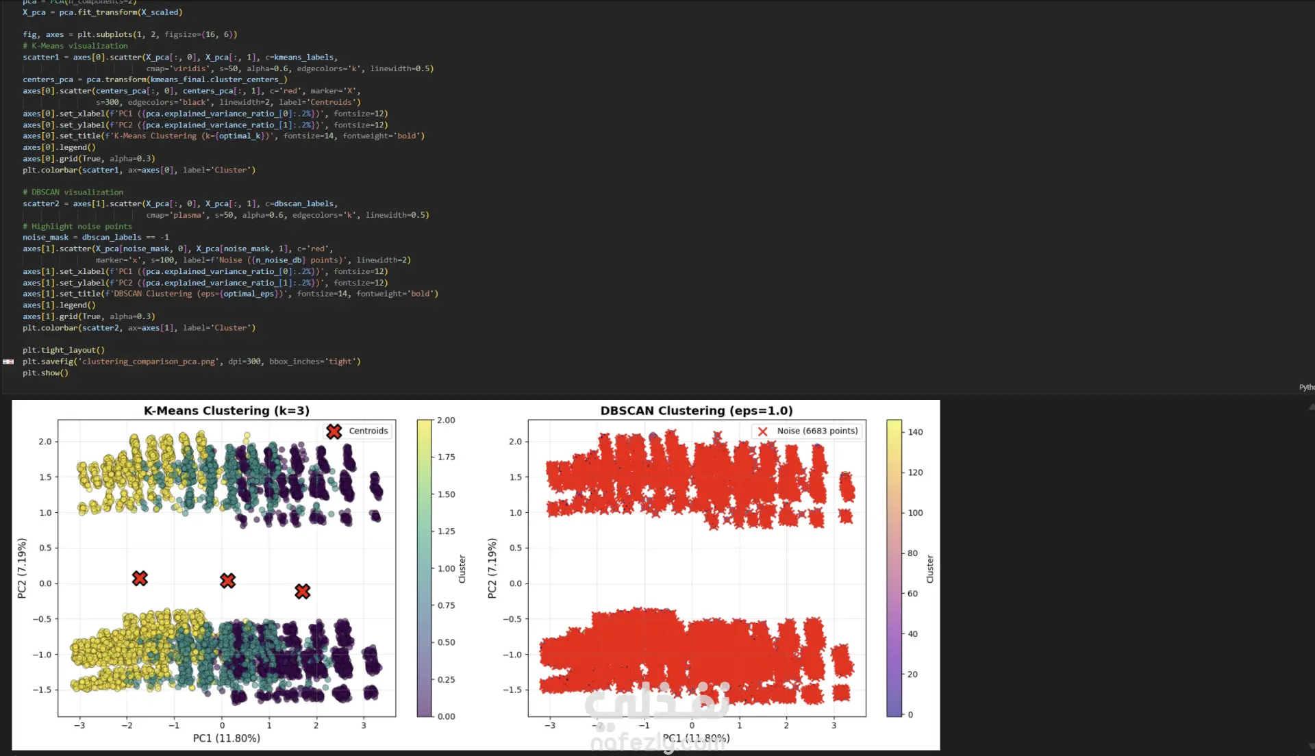 استخدمت خوارزمياتK-Means And DBSCAN البيانات Cafe Sales Data اولا نظفت الداتا باستخدام Pandas وإزالة القيم المفقودة والقيم الشاذة وتطبيق خوارزميات K-Means And DBSCAN