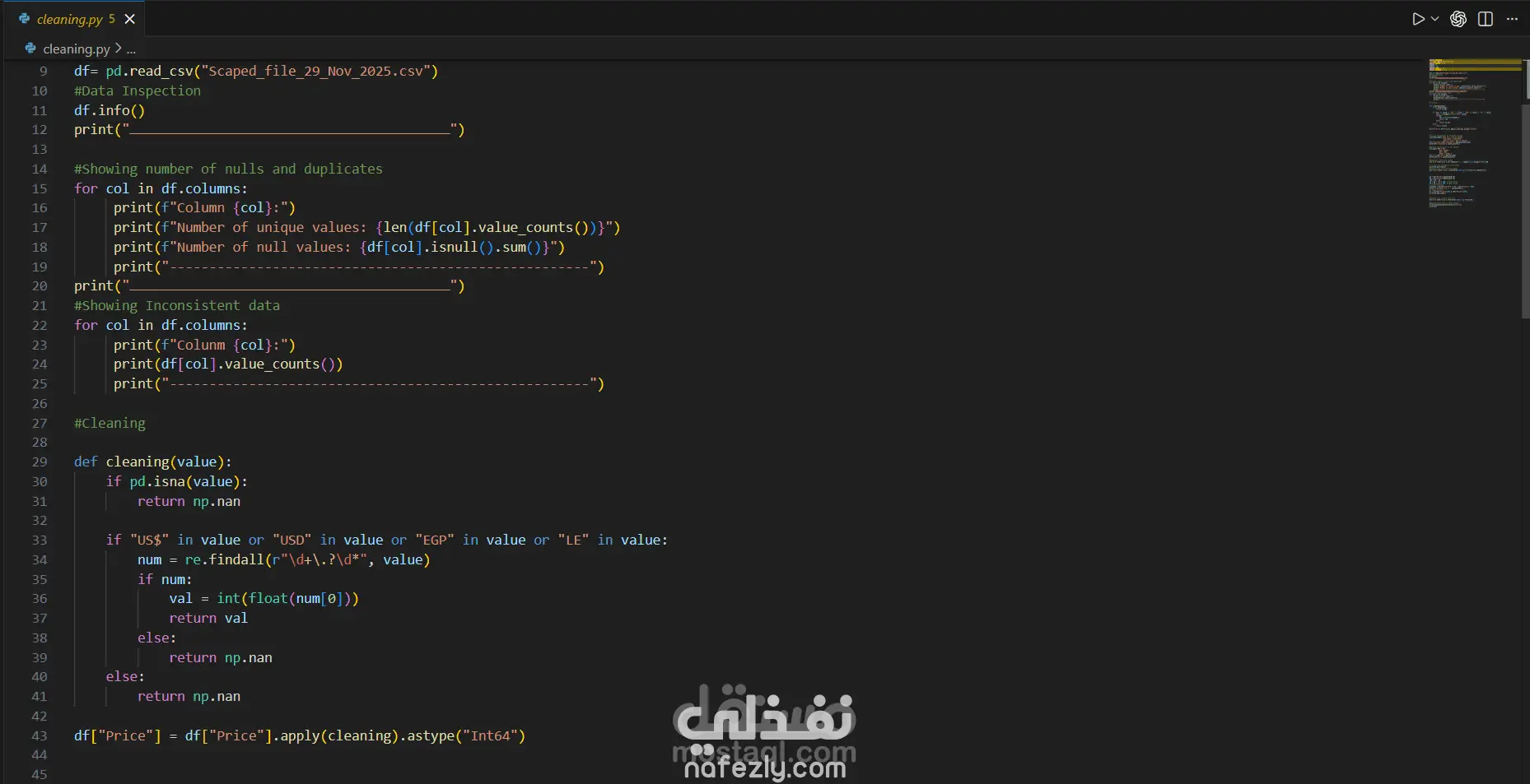 قمت بتنفيذ مشروع متكامل لتحليل بيانات متجر ملابس إلكتروني بهدف استخراج رؤية قابلة للتنفيذ تساعد في تحسين قرارات التسعير وزيادة الأرباح. مراحل تنفيذ المشروع: -استخراج البيانات (Data Extraction): جمع البيانات من ملفات المبيعات وقواعد البيانات الخاصة بالمتجر. تنظيم البيانات في صيغة مناسبة للتحليل. - تنظيف البيانات (Data Cleaning): معالجة القيم المفقودة (Missing Values). حذف التكرارات وتصحيح الأخطاء. توحيد صيغ البيانات (التواريخ – الفئات – الأسعار). -تحليل البيانات الاستكشافي (EDA): تحليل سلوك العملاء وأنماط الشراء. دراسة العلاقة بين نوع المنتج، الموسم، العلامة التجارية والسعر. تحديد المنتجات الأعلى مبيعًا والأكثر ربحية. - (Data Visualization): إنشاء لوحات عرض احترافية باستخدام الرسوم البيانية التفاعلية. عرض مؤشرات الأداء الرئيسية (KPIs). توضيح الاتجاهات الموسمية والتغيرات في الأسعار. -بناء نموذج تنبؤ بالأسعار (Price Prediction Model) تجهيز البيانات للنمذجة (Feature Engineering). تقسيم البيانات إلى تدريب واختبار. بناء نموذج تعلم آلي للتنبؤ بأسعار الملابس. تقييم النموذج وتحسين دقته باستخدام مقاييس الأداء المناسبة.