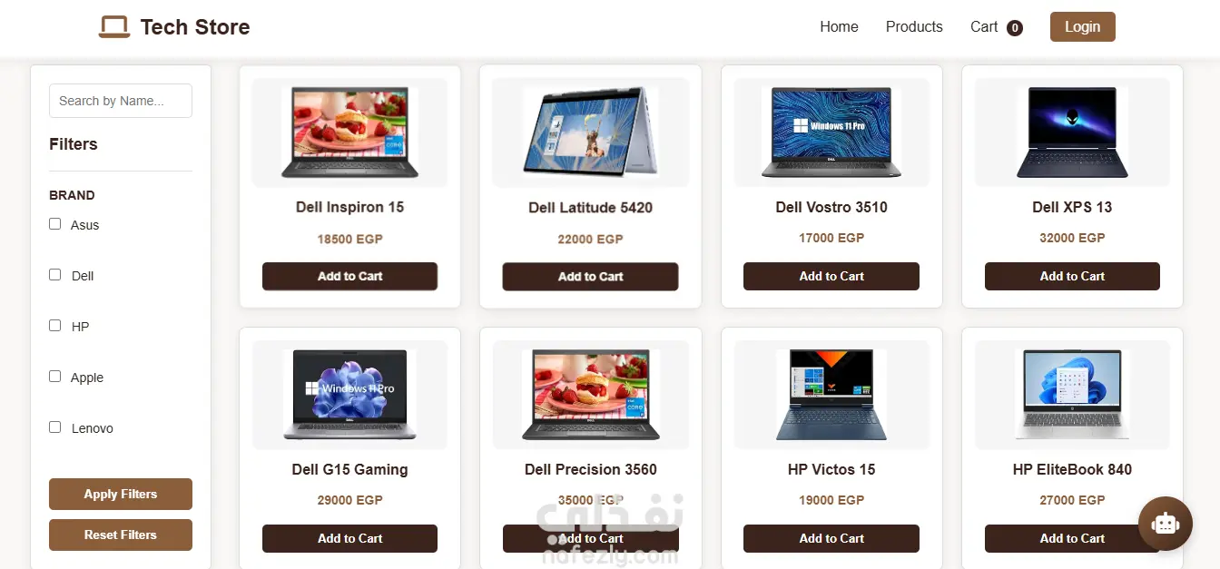 يعتمد المشروع على LocalStorage لإدارة بيانات المستخدمين وسلة المشتريات، مع بناء جميع الوظائف باستخدام JavaScript بدون أي مكتبات خارجية.