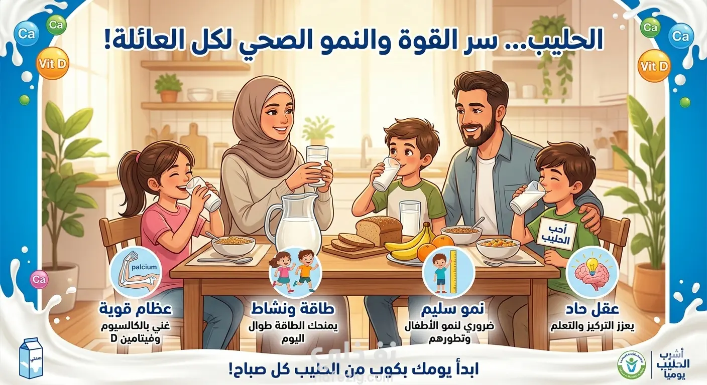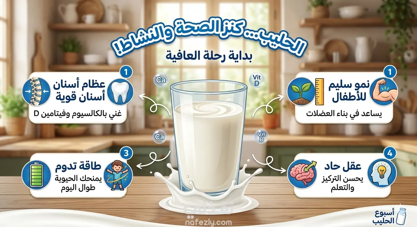 فيديو قصير بأسلوب جذاب يوضح: أهمية الحليب لصحة العظام والأسنان دوره في تقوية المناعة فائدته للأطفال والكبار قيمته الغذائية العالية