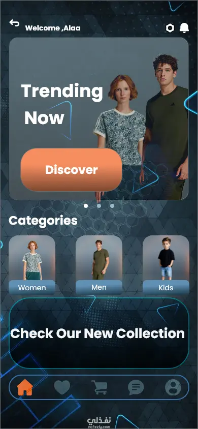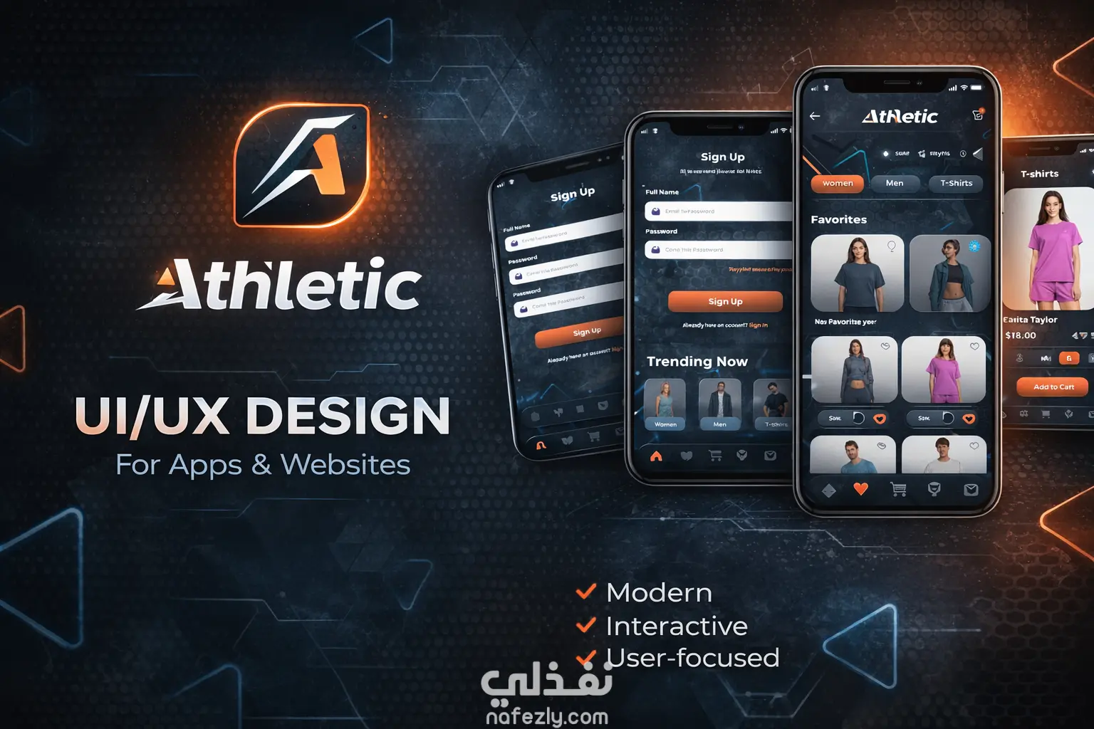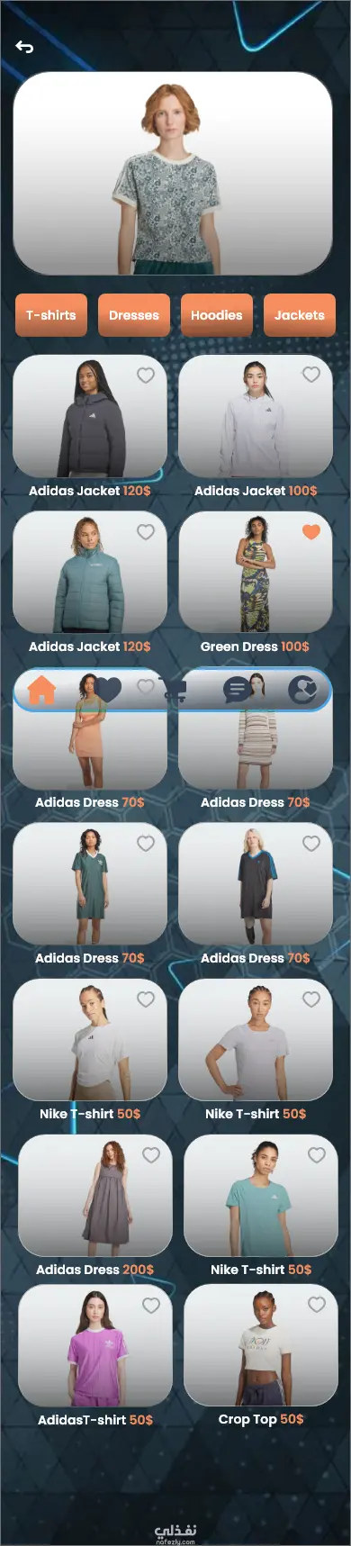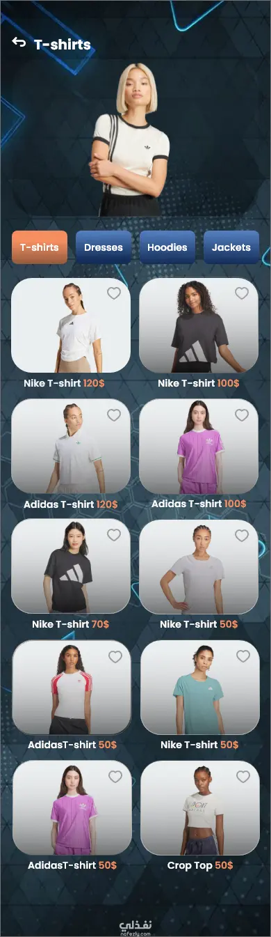 تصميم لتطبيق ملابس رياضيه بعض من الشاشات للتطبيق