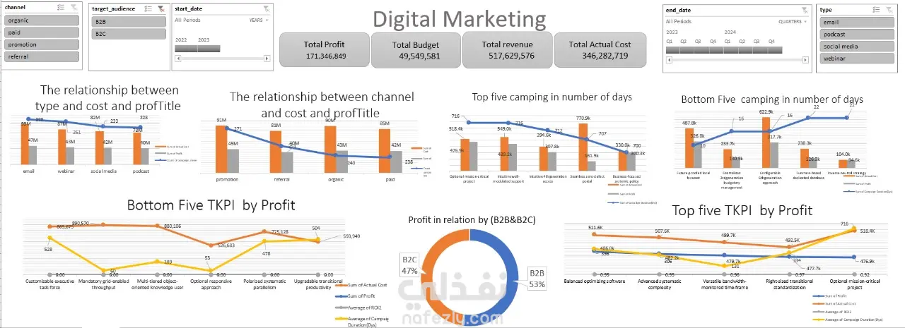 تمثيل بصري: استخدام الرسوم البيانية المتقدمة (Dynamic Charts) لتوضيح اتجاهات الأرباح ومقارنة الأداء الفعلي بالمخطط له.