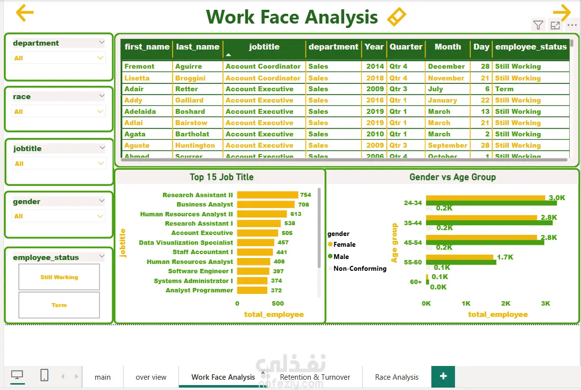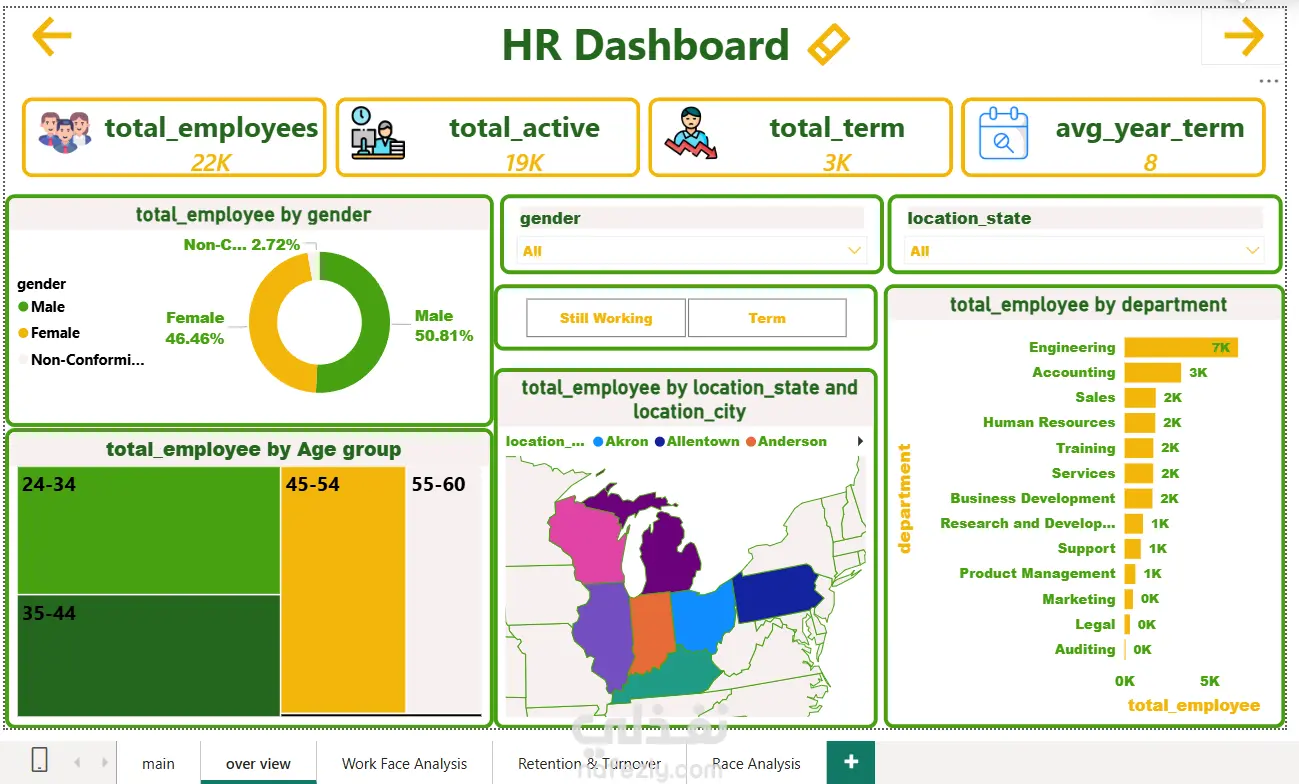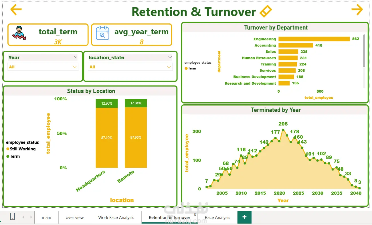 نظام تحليل القوى العاملة واستراتيجيات الاحتفاظ بالموظفين (HR Analytics Dashboard).