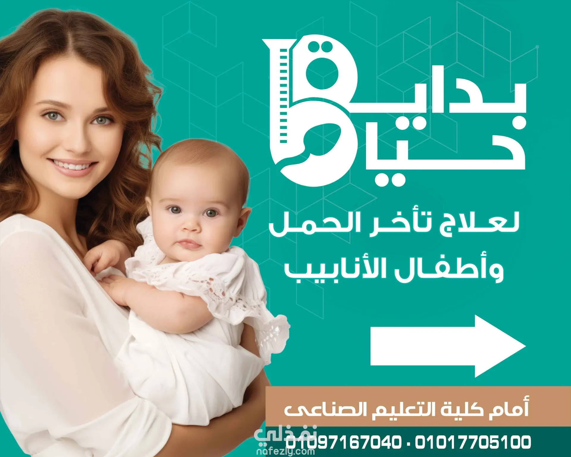 تصميم إعلان خارجي (Billboard) لمركز بداية المتخصص في علاج تأخر الحمل وأطفال الأنابيب. يهدف التصميم إلى تقديم رسالة واضحة وجذابة تلفت انتباه المارة وتعرّف بالخدمات الطبية التي يقدمها المركز.