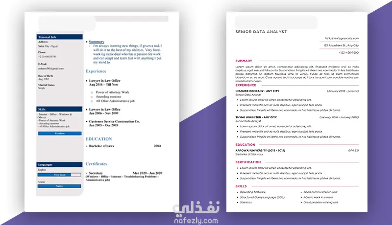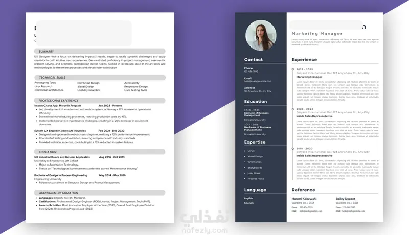 - تنسيق مثالي وترتيب منطقي للخبرات والمهارات