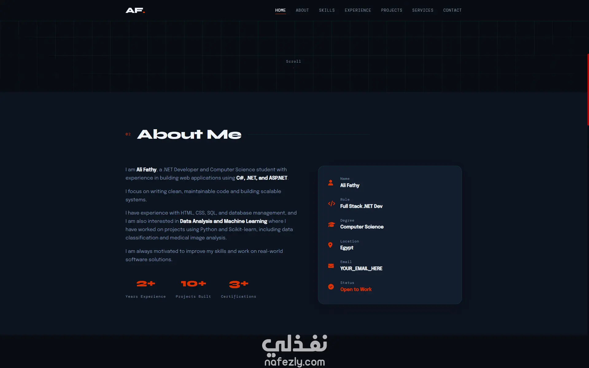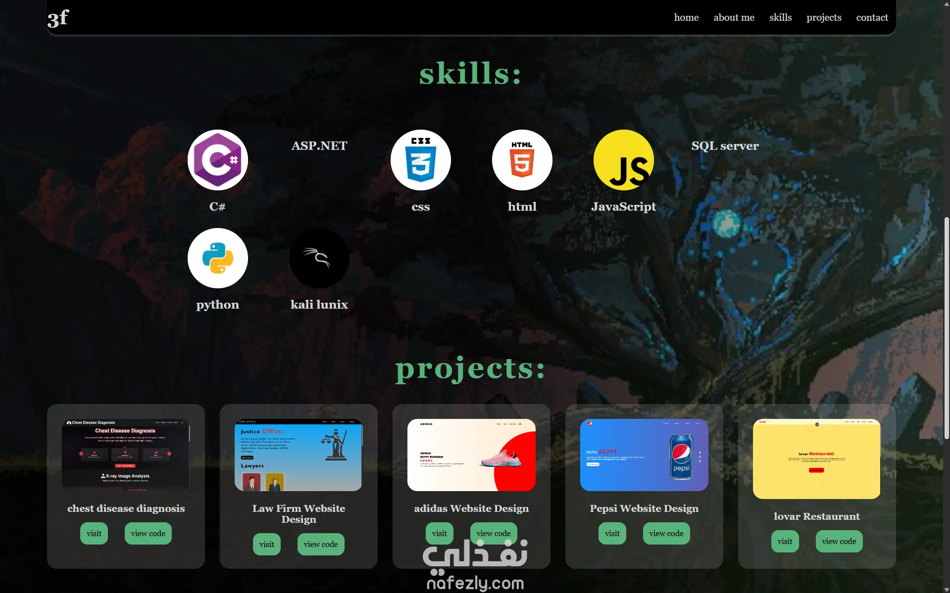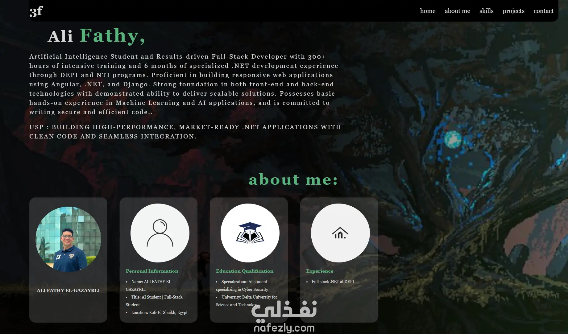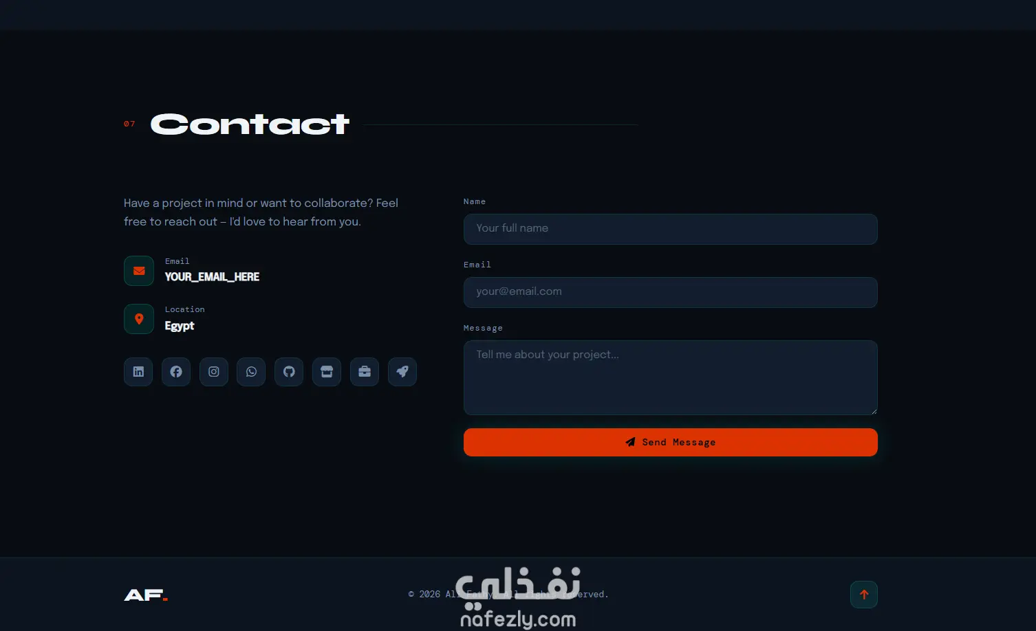 قمت بتصميم وتطوير موقع Portfolio شخصي لعرض المشاريع والمهارات بطريقة احترافية. يحتوي الموقع على واجهة بسيطة وسهلة الاستخدام مع تصميم متجاوب يعمل على جميع الأجهزة. الموقع يتيح عرض المشاريع، المهارات، معلومات عن صاحب الموقع ووسائل التواصل بطريقة منظمة تساعد في إبراز الأعمال والخبرات بشكل احترافي. أستطيع إنشاء مواقع Portfolio مخصصة تناسب المطورين والمصممين والطلاب لعرض أعمالهم ومهاراتهم بشكل مميز. التقنيات المستخدمة HTML CSS JavaScript Responsive Design