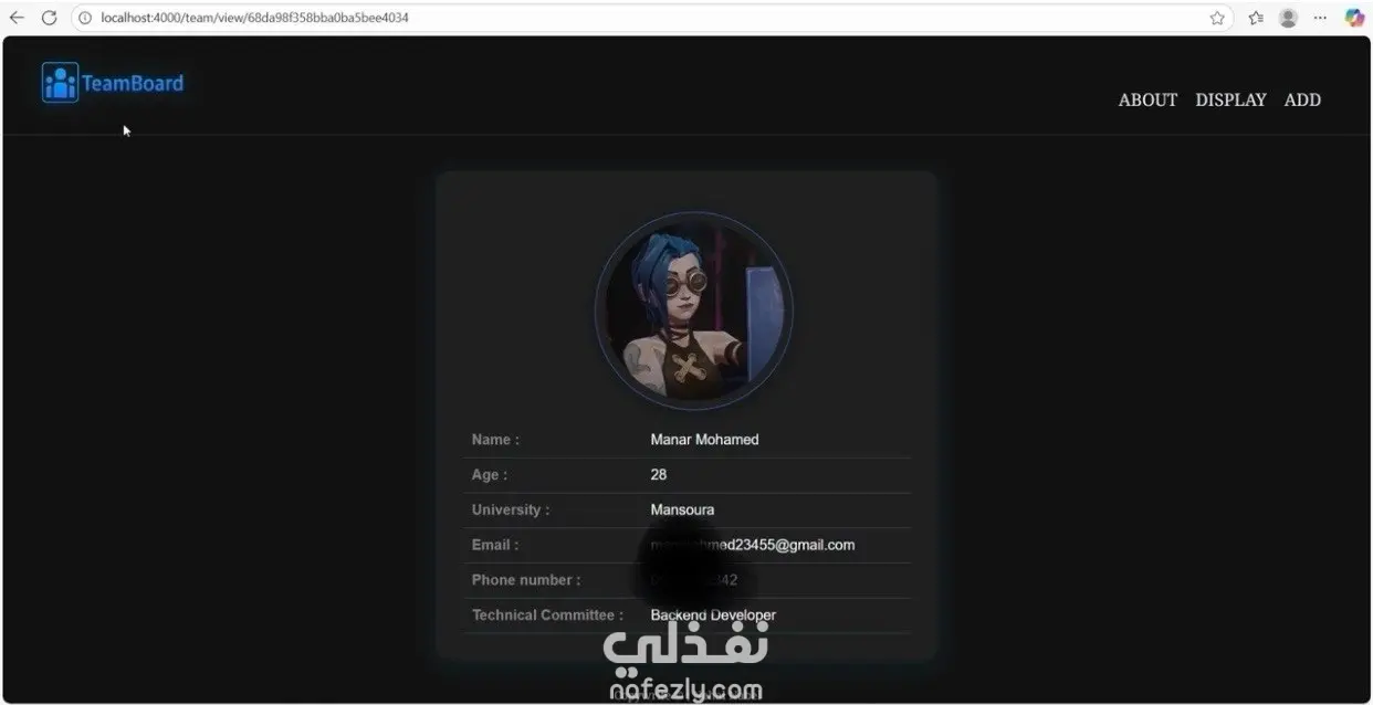 تسمح اللوحة بعرض جميع الأعضاء في قائمة أو جدول متجاوب، مع إمكانية إضافة أعضاء جدد، تعديل البيانات، وحذف الأعضاء، بالإضافة إلى عرض صفحة تفاصيل لكل عضو.