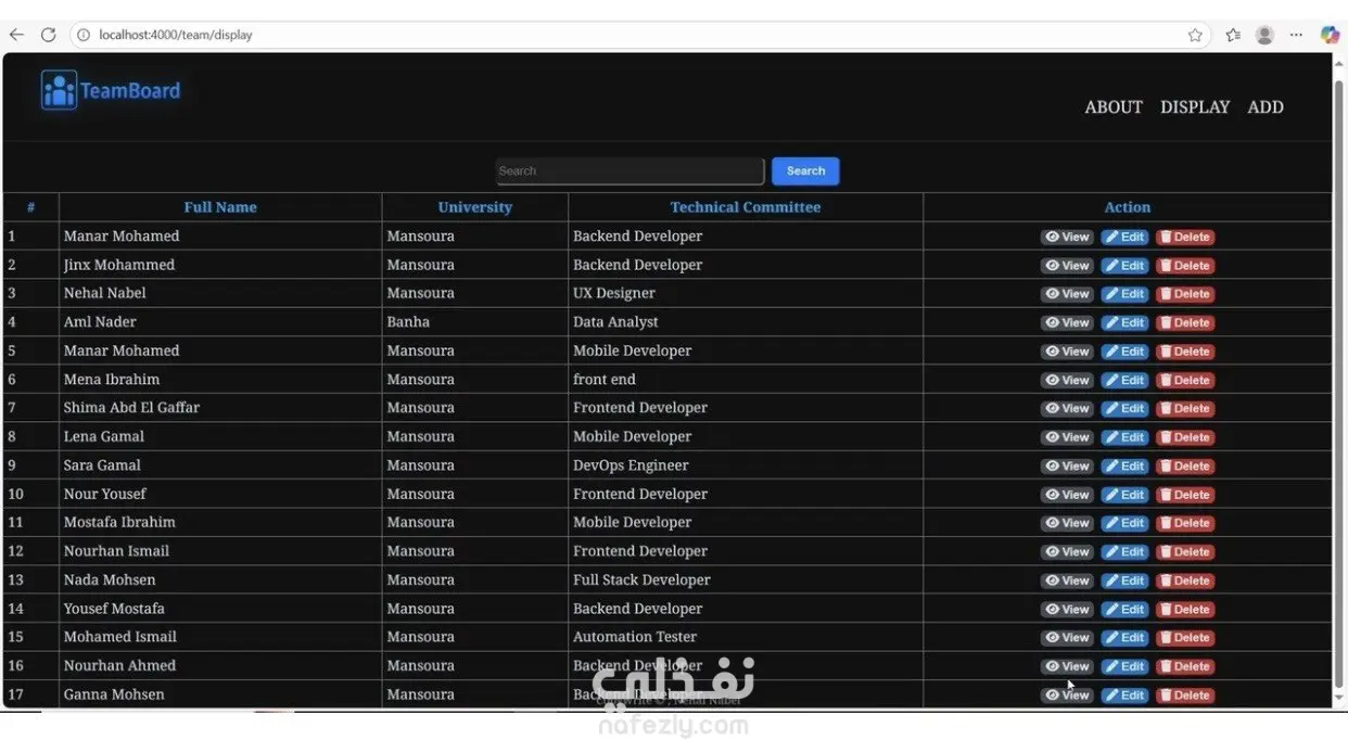 مما يجعل الكود منظمًا وسهل التوسع والصيانة، ومناسبًا لأي نظام إدارة أعضاء أو فريق عمل.