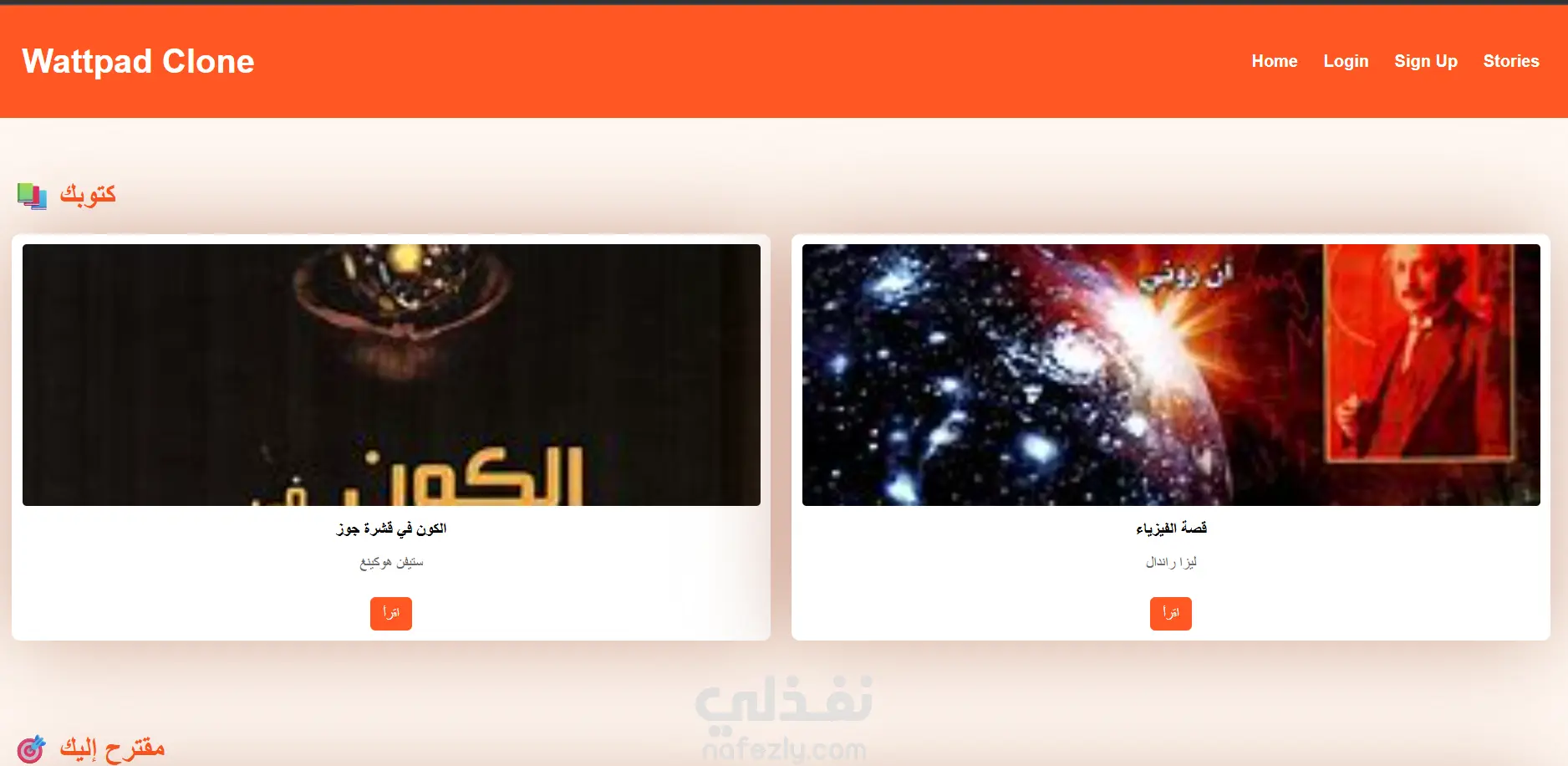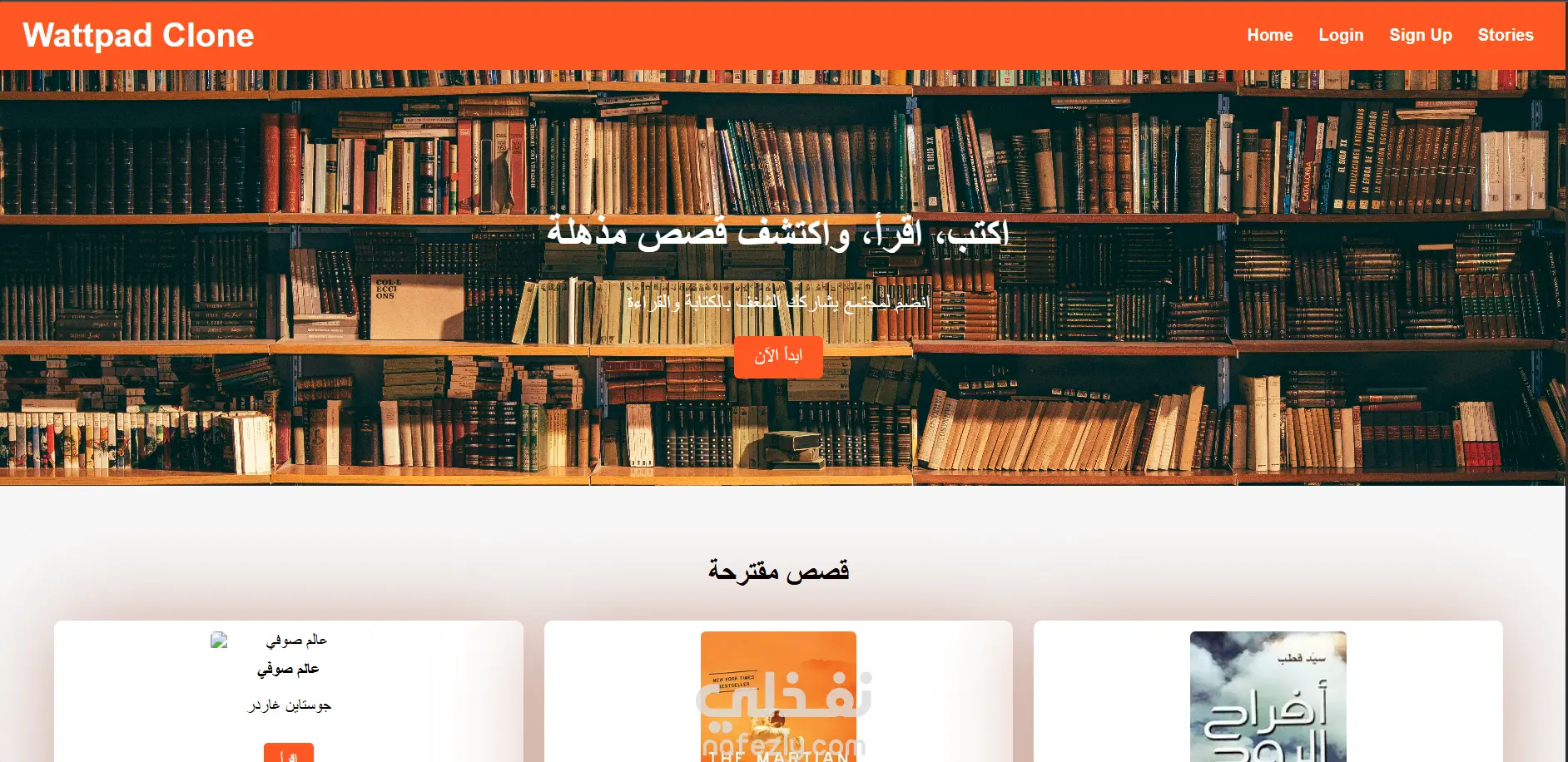 منصة صغيرة بس قوية وسهلة الاستخدام زي Wattpad تسمح للناس بالاستمتاع بالكتب والروايات على الإنترنت بطريقة سلسة وممتعة المشروع ده هو نسخة تجريبية وتفاعلية لصفحة قراءة كتب مصممة بعناية لتوفر تجربة قارئ حقيقي.