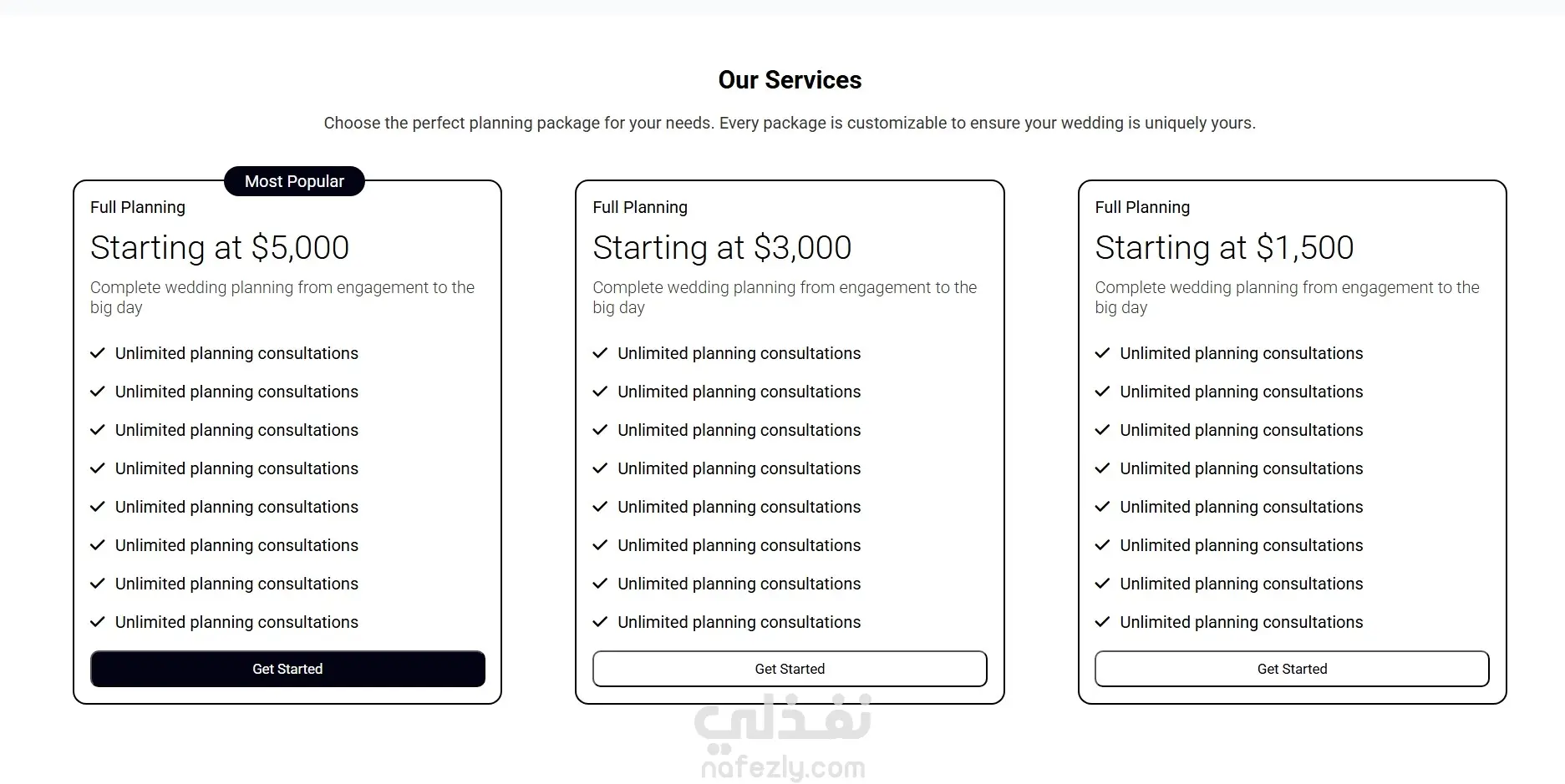 عرض منظم وواضح للخدمات والخطط.