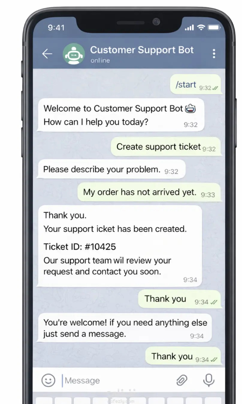 قمت بتطوير بوت تيليجرام لخدمة العملاء يساعد الشركات والمتاجر على استقبال الاستفسارات والشكاوى وتتبع حالة الطلبات بشكل تلقائي ومنظم. المميزات الأساسية: قائمة تفاعلية (Buttons) لتسهيل الاستخدام بدل الرسائل الطويلة إنشاء تذكرة دعم (Support Ticket) تلقائيًا برقم مرجعي لكل عميل تتبع الطلبات: العميل يكتب رقم الطلب ويستقبل حالته (قيد التنفيذ / تم الشحن / تم التسليم) إرسال الملفات والصور داخل التذكرة (لقطات، فواتير، إثبات دفع) لوحة تحكم للمشرف لإدارة التذاكر والرد عليها وتغيير الحالة إشعارات تلقائية للعميل عند تحديث التذكرة أو الطلب نظام صلاحيات (Admin / Agent) + سجل كامل للمحادثات التخزين والتكامل: حفظ البيانات في قاعدة بيانات (SQLite أو PostgreSQL) إمكانية الربط مع Google Sheets لتسجيل الطلبات والتذاكر إمكانية الربط مع API متجر/نظام داخلي لجلب حالة الطلب تلقائيًا (عند توفر API) التقنيات المستخدمة: Python – Telegram Bot API – SQLite/PostgreSQL – Webhook– FastAPI – Docker