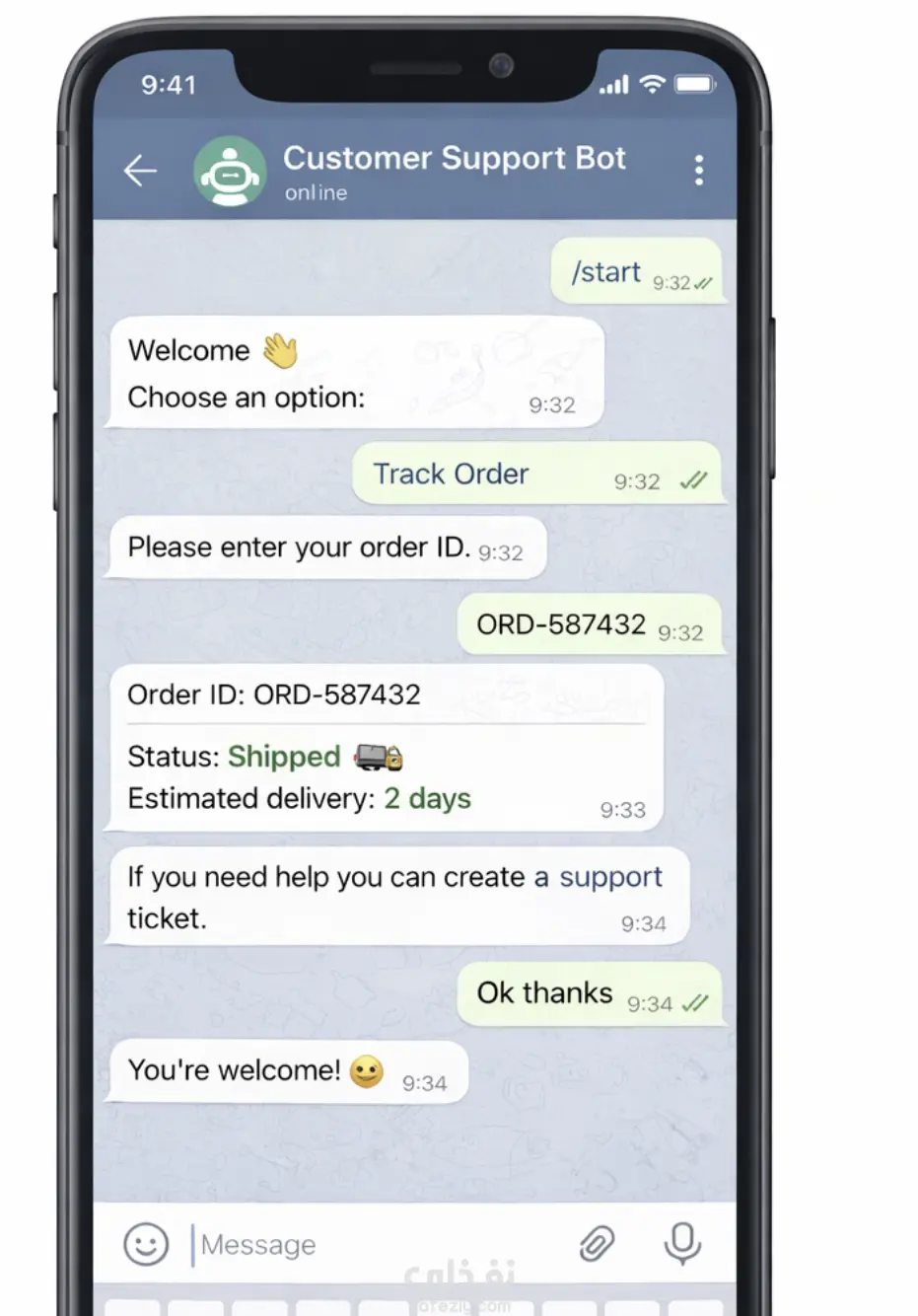 بوت تيليجرام لخدمة العملاء وتتبع الطلبات وإدارة الشكاوى (Support & Orders Bot)