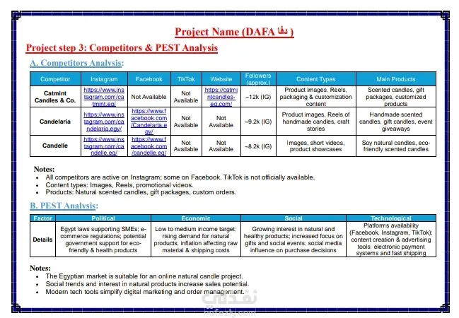 هذا المشروع يعكس قدرتي على بناء استراتيجية تسويق كاملة وتحويلها إلى خطة تنفيذ عملية قابلة للتطبيق.