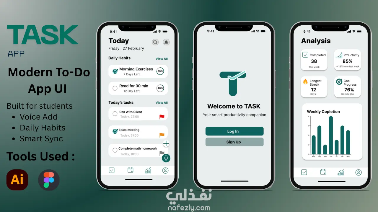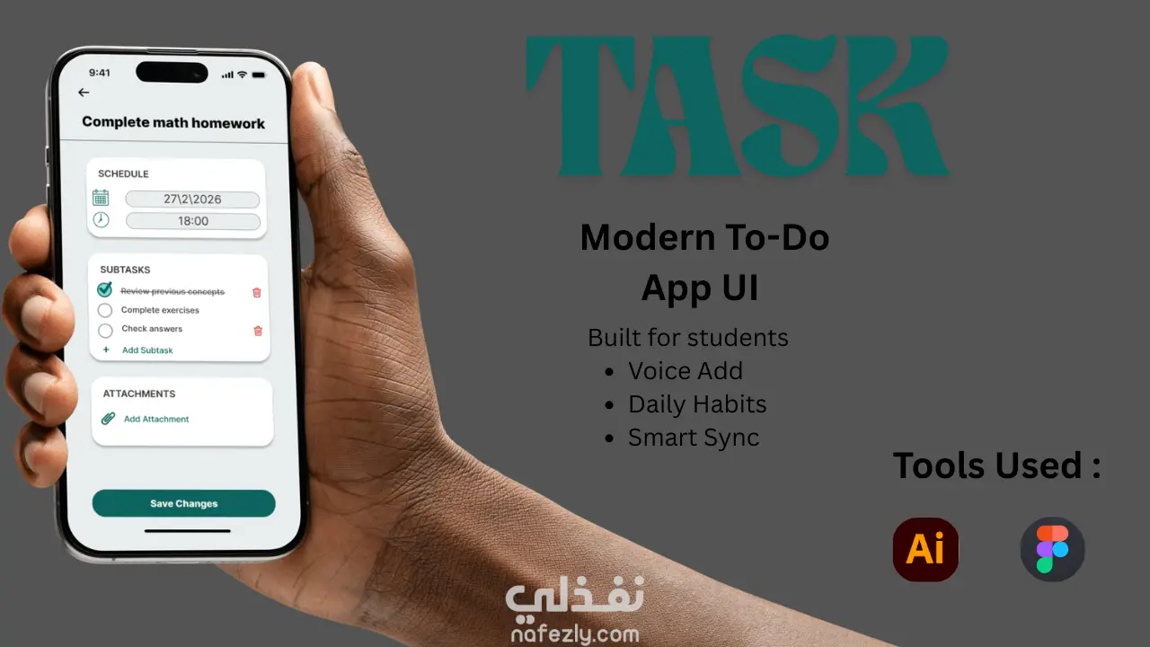 قمت بتصميم واجهات تطبيق لإدارة وتنظيم المهام باسم TASK – Make Things Done، وهو تطبيق إنتاجية يهدف إلى مساعدة المستخدمين، خصوصًا الطلاب، على تنظيم مهامهم اليومية والبدء في إنجازها بسهولة بدون الشعور بالضغط. تم تنفيذ التصميم بأسلوب Modern Flat UI مع التركيز على البساطة وسهولة الاستخدام، كما تم تصميم الواجهات بنسختين Light Mode و Dark Mode لضمان تجربة مريحة في مختلف ظروف الاستخدام. يتضمن التطبيق مجموعة من المميزات الأساسية مثل: -إضافة المهام بطريقة تقليدية أو باستخدام Voice Task لإضافة المهام بالصوت -إمكانية تحديد تاريخ ووقت المهمة من خلال Calendar integration -إضافة مهام فرعية (Subtasks) داخل كل مهمة -إمكانية إرفاق مرفقات وملفات (Attachments) داخل المهمة -نظام Habit Builder لبناء عادات يومية ومتابعة الاستمرارية -صفحة Analysis لعرض إحصائيات الإنتاجية وتقدم المستخدم -دعم المزامنة Sync للحفاظ على بيانات المستخدم محدثة. تم تصميم التطبيق وفق نظام 8pt spacing system للحفاظ على التناسق البصري بين العناصر، مع استخدام بطاقات (Cards) وأزرار واضحة لسهولة التفاعل. تم تنفيذ التصميم باستخدام Figma مع مراعاة أفضل ممارسات تصميم واجهات المستخدم وتجربة المستخدم، ليكون التصميم مناسبًا للتطبيقات الحديثة وقابلًا للتطوير إلى تطبيق فعلي.