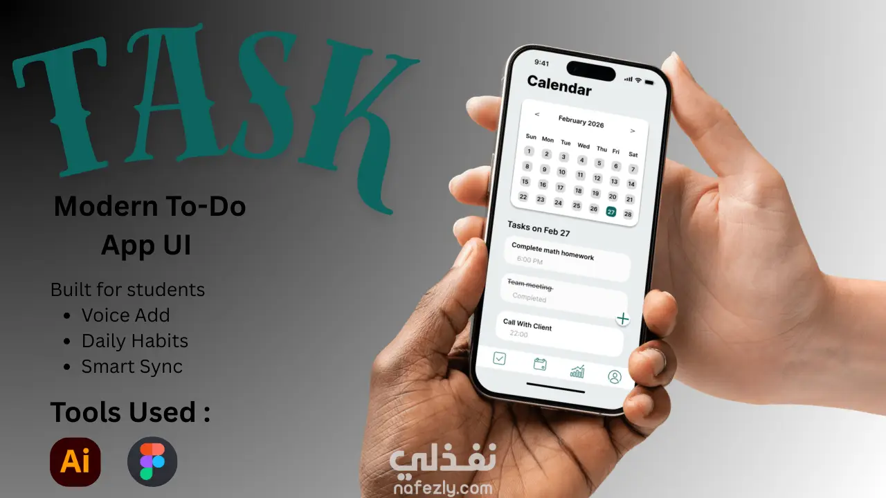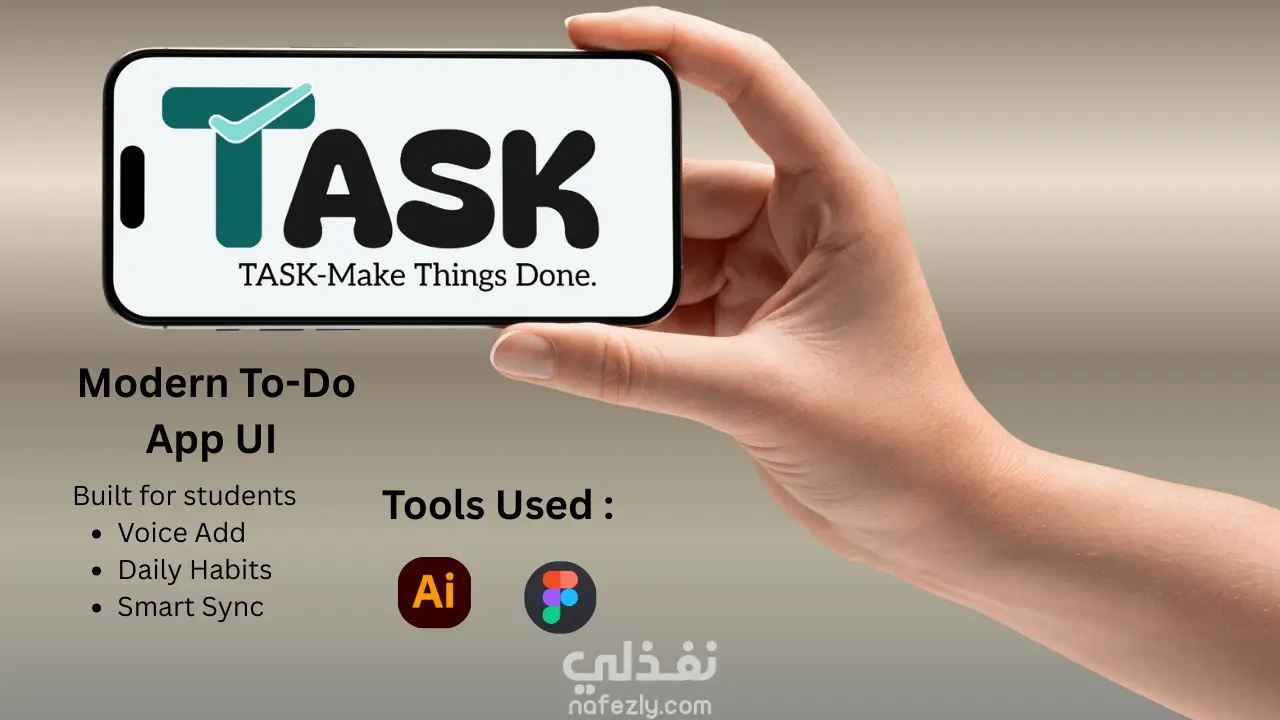 تصميم واجهة تطبيق إدارة المهام TASK بتجربة مستخدم حديثة.