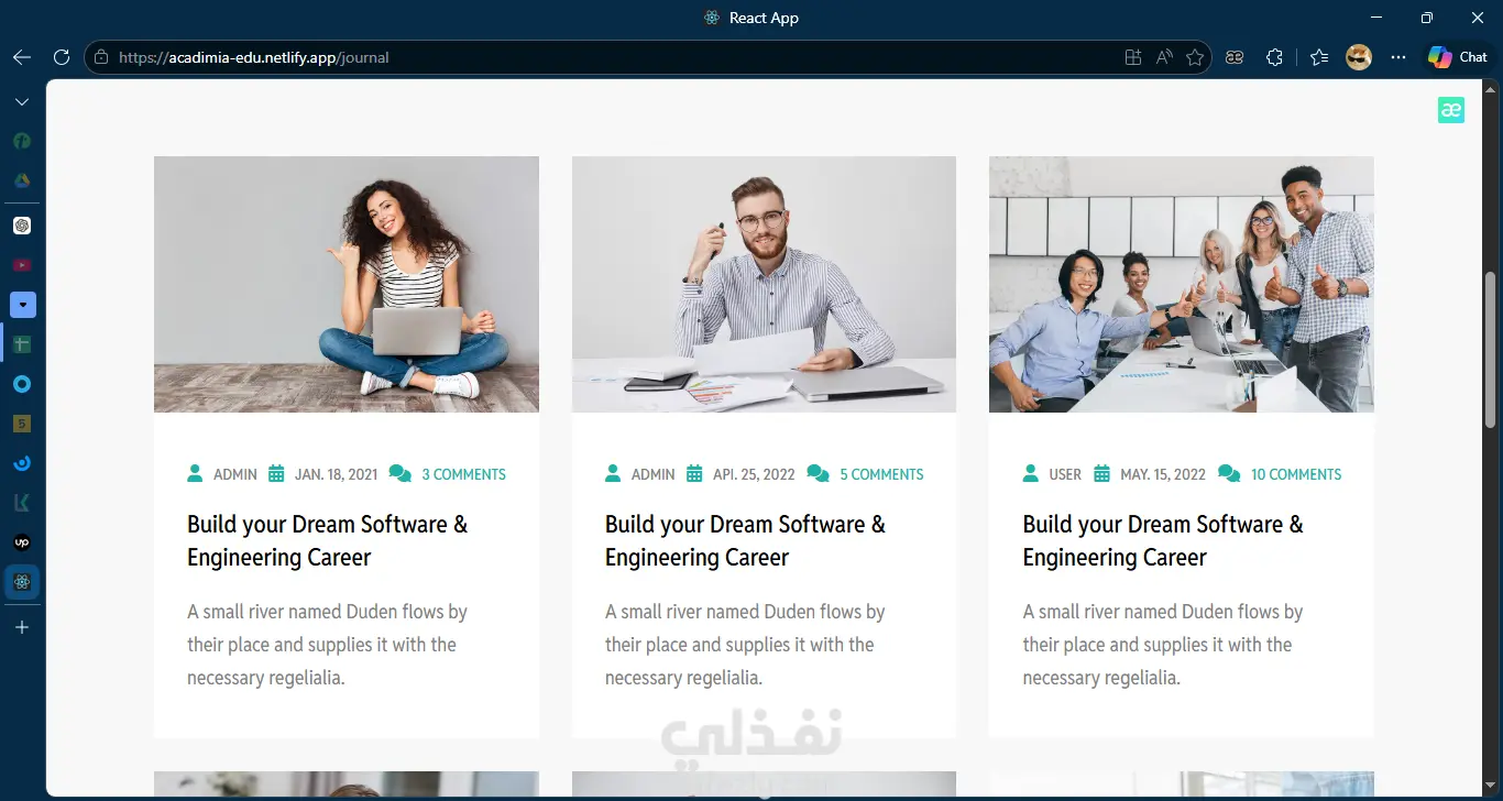Academia هو مشروع منصة تعليمية يهدف إلى عرض الدورات وتنظيم المحتوى التعليمي بطريقة سهلة ومنظمة. يتيح الموقع استعراض الكورسات، تفاصيل كل دورة، والمدربين، مع تصميم عصري وتجربة مستخدم سلسة. 🔹 تصميم متجاوب يعمل على جميع الأجهزة 🔹 تنظيم المحتوى باستخدام مكونات قابلة لإعادة الاستخدام 🔹 نظام تنقل منظم وسهل الاستخدام 🔹 عرض ديناميكي للدورات 🔹 تحسين تجربة المستخدم وسرعة الأداء يوضح هذا المشروع قدرتي على بناء واجهات احترافية لمجال التعليم مع الاهتمام بالتفاصيل وتجربة المستخدم.