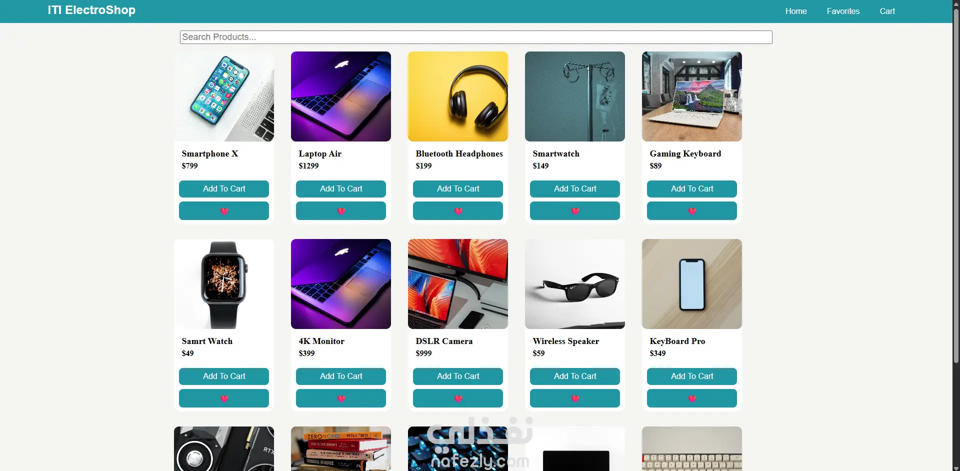 موقع متجر إلكتروني متكامل لعرض وبيع المنتجات الإلكترونية، تم تطويره كجزء من تدريبي في مسار Full-Stack .NET. يركز المشروع على تجربة مستخدم سهلة وسريعة مع تصميم عصري ومتجاوب مع جميع الأجهزة.