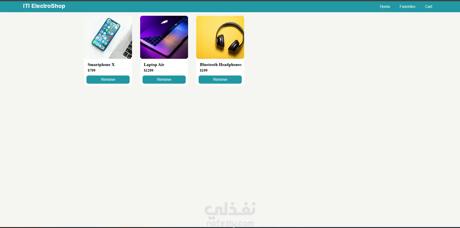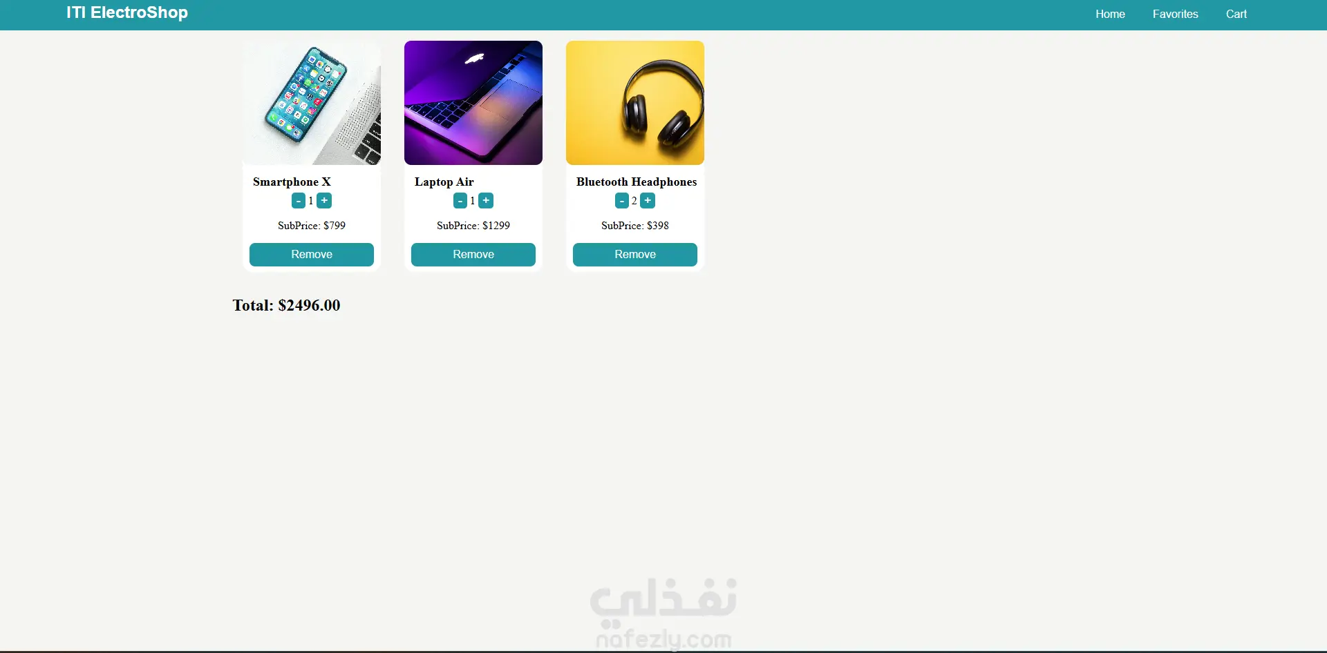صفحة السلة (Cart) مع إضافة وحذف المنتجات