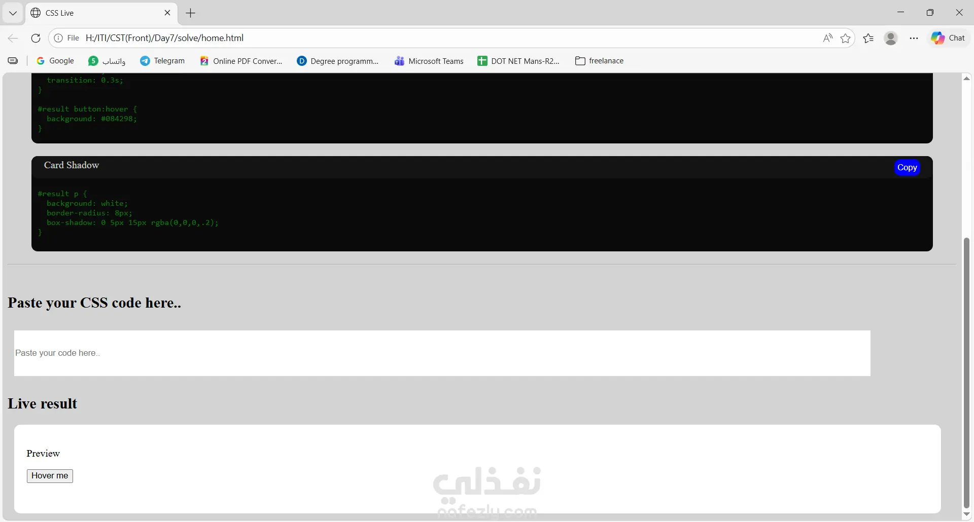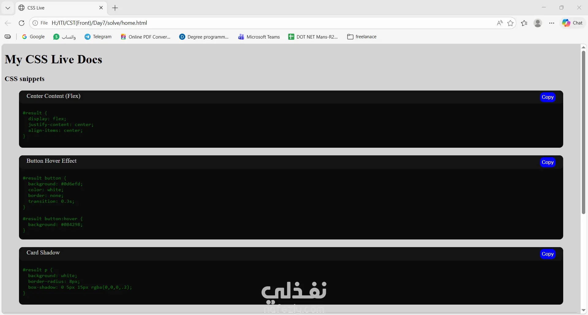 صفحة ويب بسيط تعمل تنفيذ كود CSS علي جزء تم انشائه مسبقا أسفل الصفحة