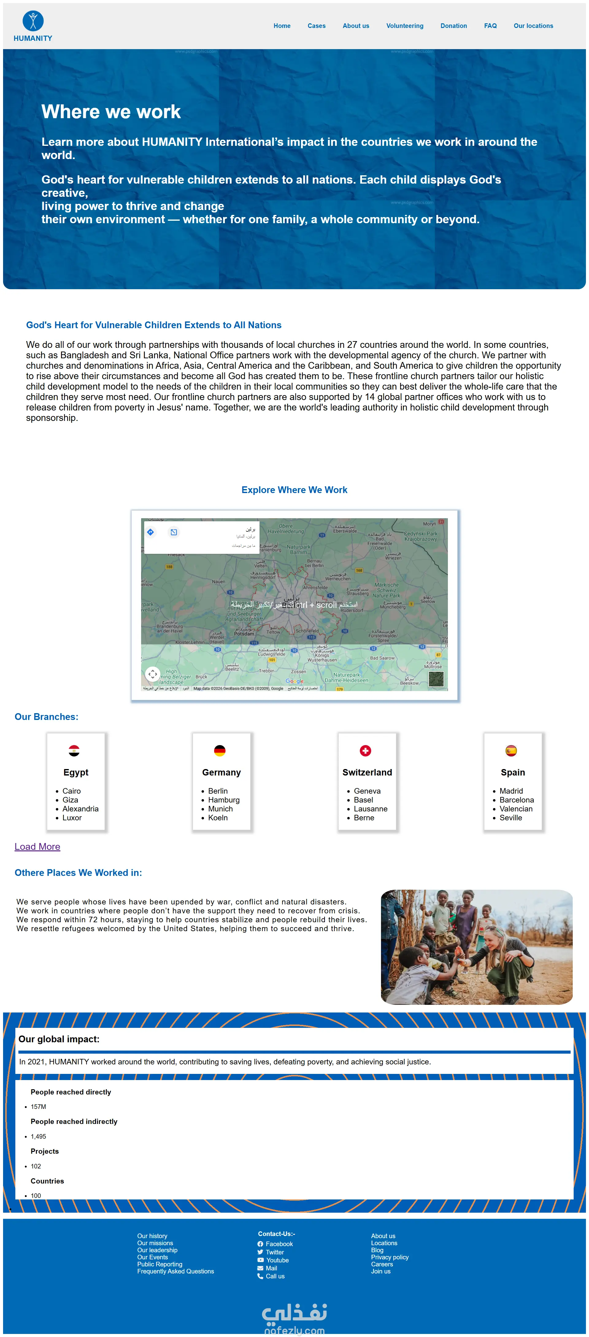 تطوير صفحة عرض موقع الجمعية الخيرية وفروعها حول العالم