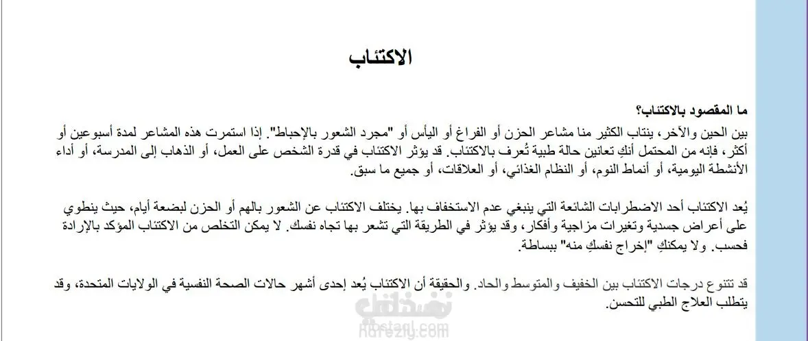 ترجمة ملف بخصوص الاكتئاب لصالح مؤسسة WellStar Health System من الإنجليزية إلى العربية.