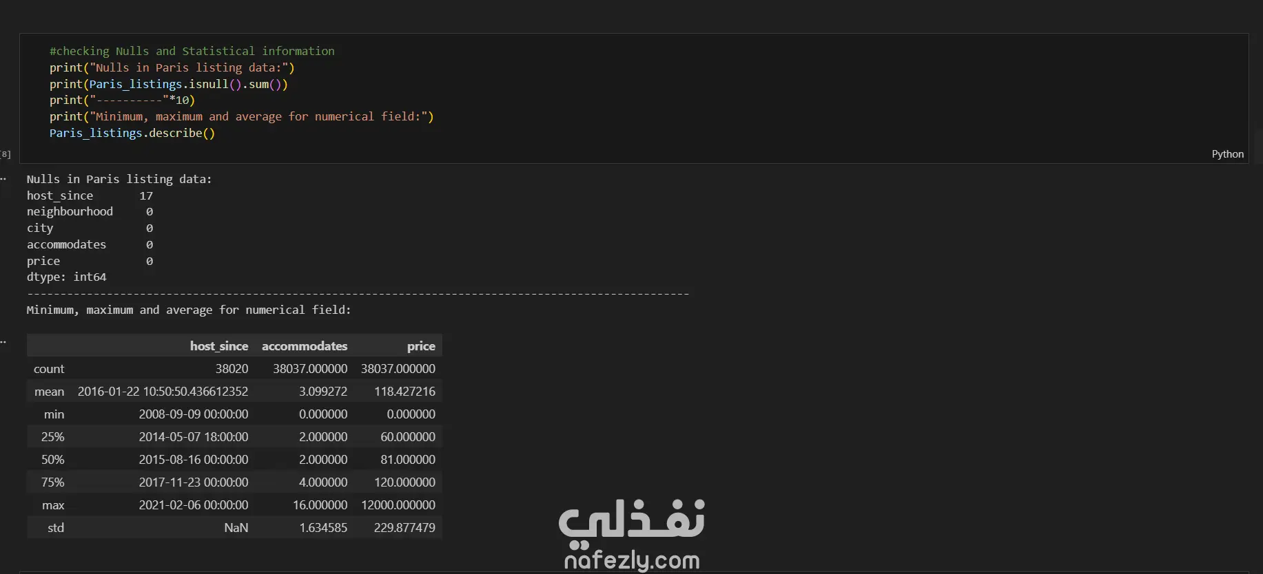 يهدف هذا المشروع إلى تحليل بيانات قوائم منصة Airbnb لاستخراج رؤى تساعد على فهم سلوك السوق، العوامل المؤثرة في الأسعار، وأنماط الحجز في المدن المختلفة. يعتمد المشروع على تقنيات تحليل البيانات والإحصاء لاكتشاف العلاقات بين خصائص العقارات مثل الموقع، عدد الغرف، التقييمات، والسعر. مراحل المشروع: جمع البيانات: الحصول على بيانات قوائم منصة Airbnb التي تحتوي على معلومات مثل السعر، الموقع، نوع العقار، وعدد التقييمات. تنظيف البيانات (Data Cleaning): معالجة القيم المفقودة، إزالة البيانات غير الصحيحة، وتحويل بعض الأعمدة إلى صيغ مناسبة للتحليل. التحليل الاستكشافي للبيانات (EDA): دراسة توزيع الأسعار، أنواع العقارات، وعدد المراجعات لفهم الأنماط والعلاقات بين المتغيرات. تصور البيانات (Data Visualization): إنشاء رسوم بيانية توضح النتائج باستخدام أدوات مثل seaborn و matplotlib