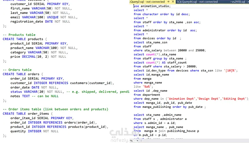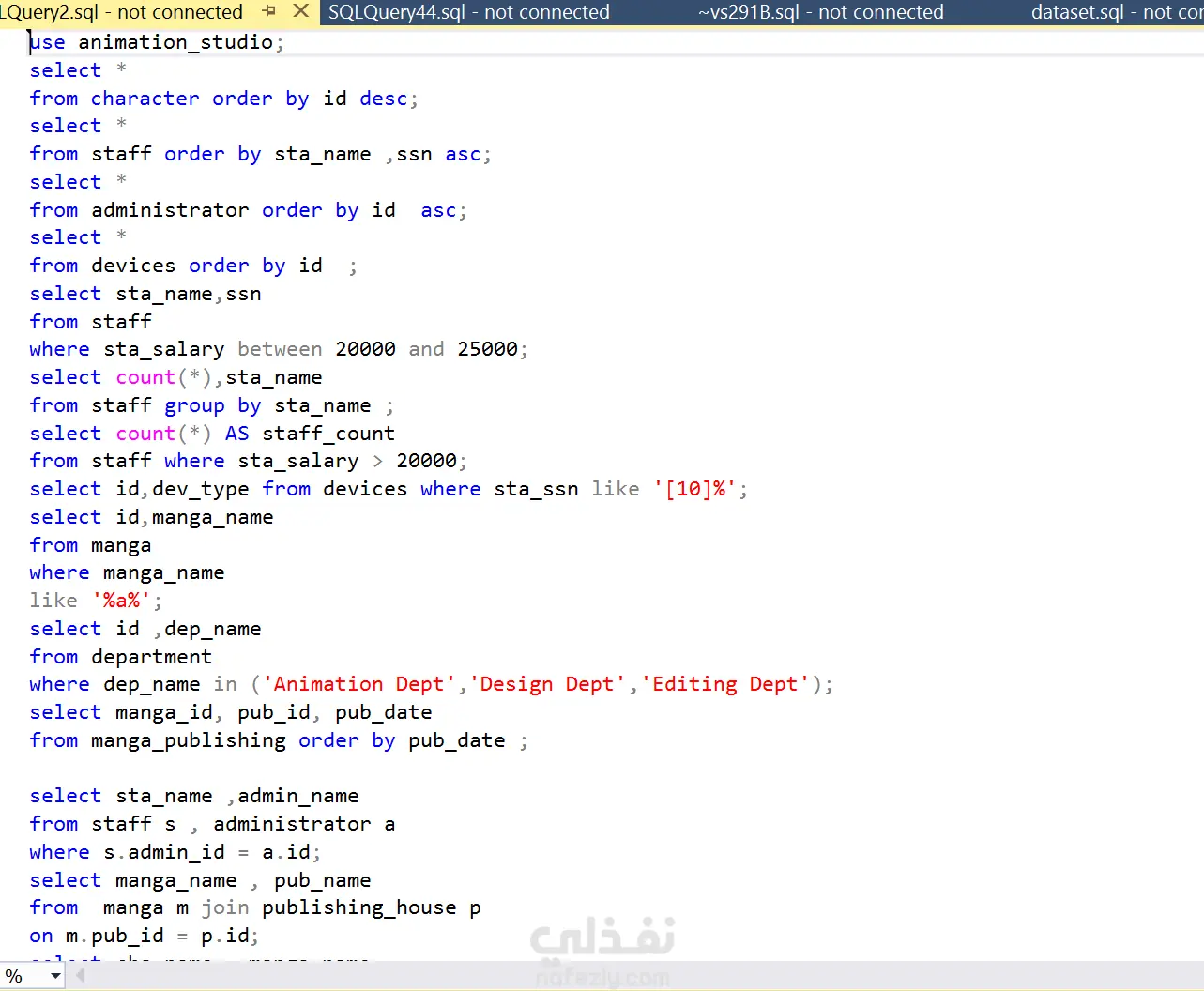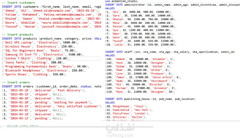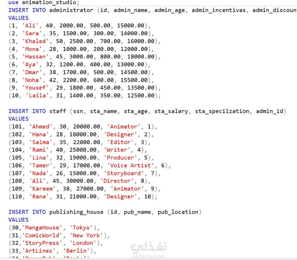 إنشاء داتا بيز كامل لمكتب أنميشن استيديو