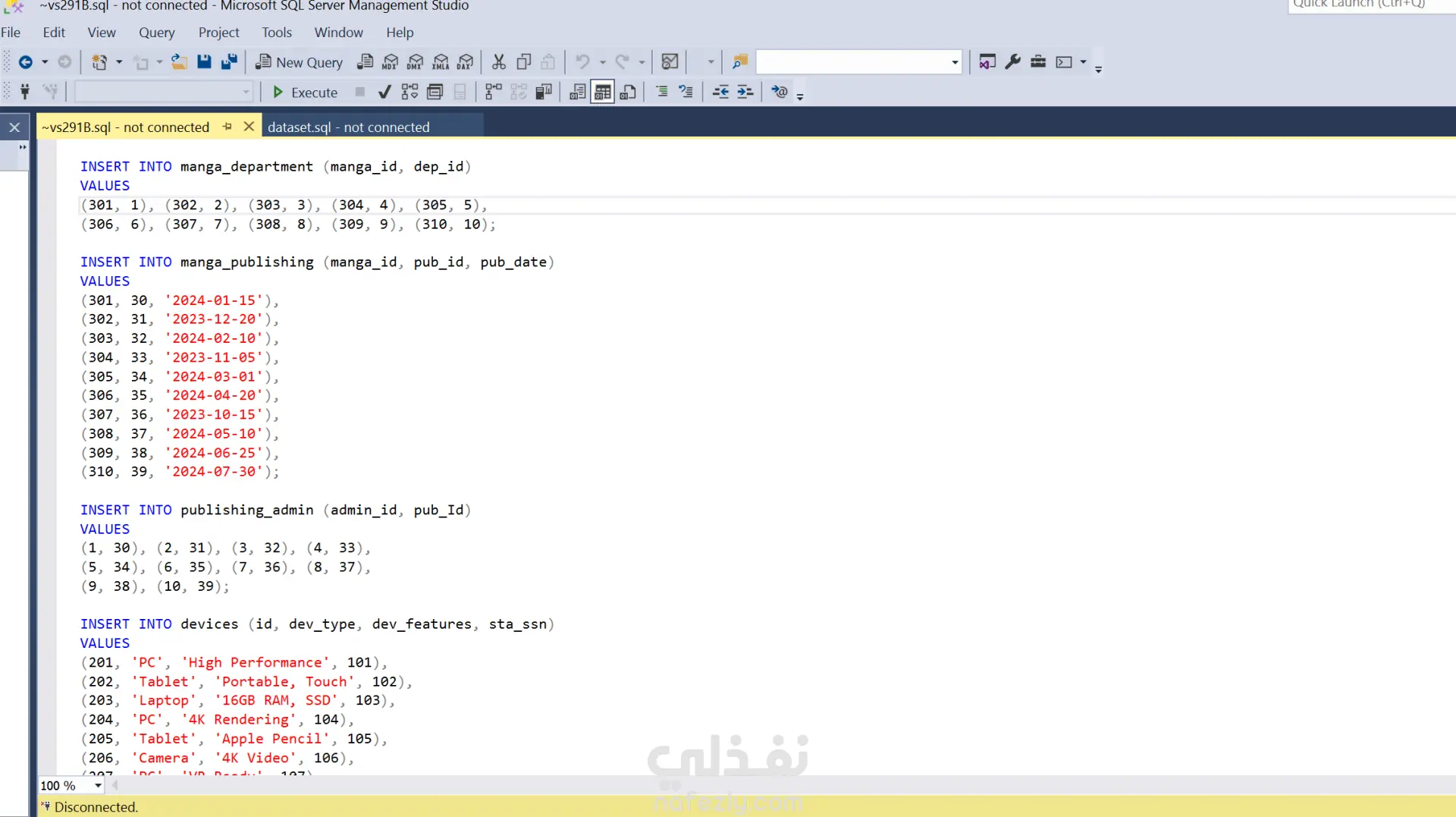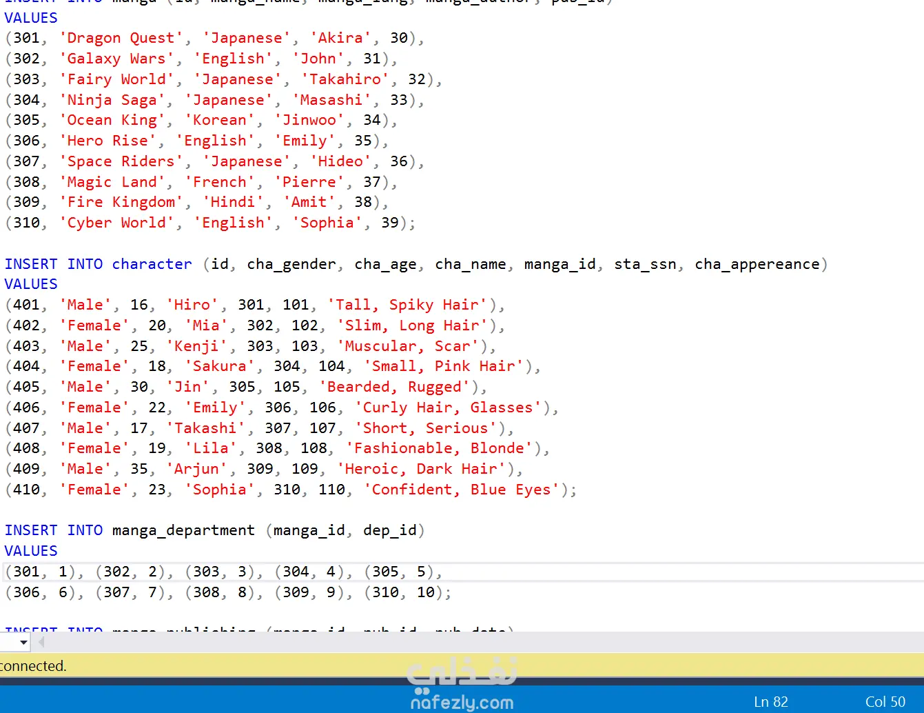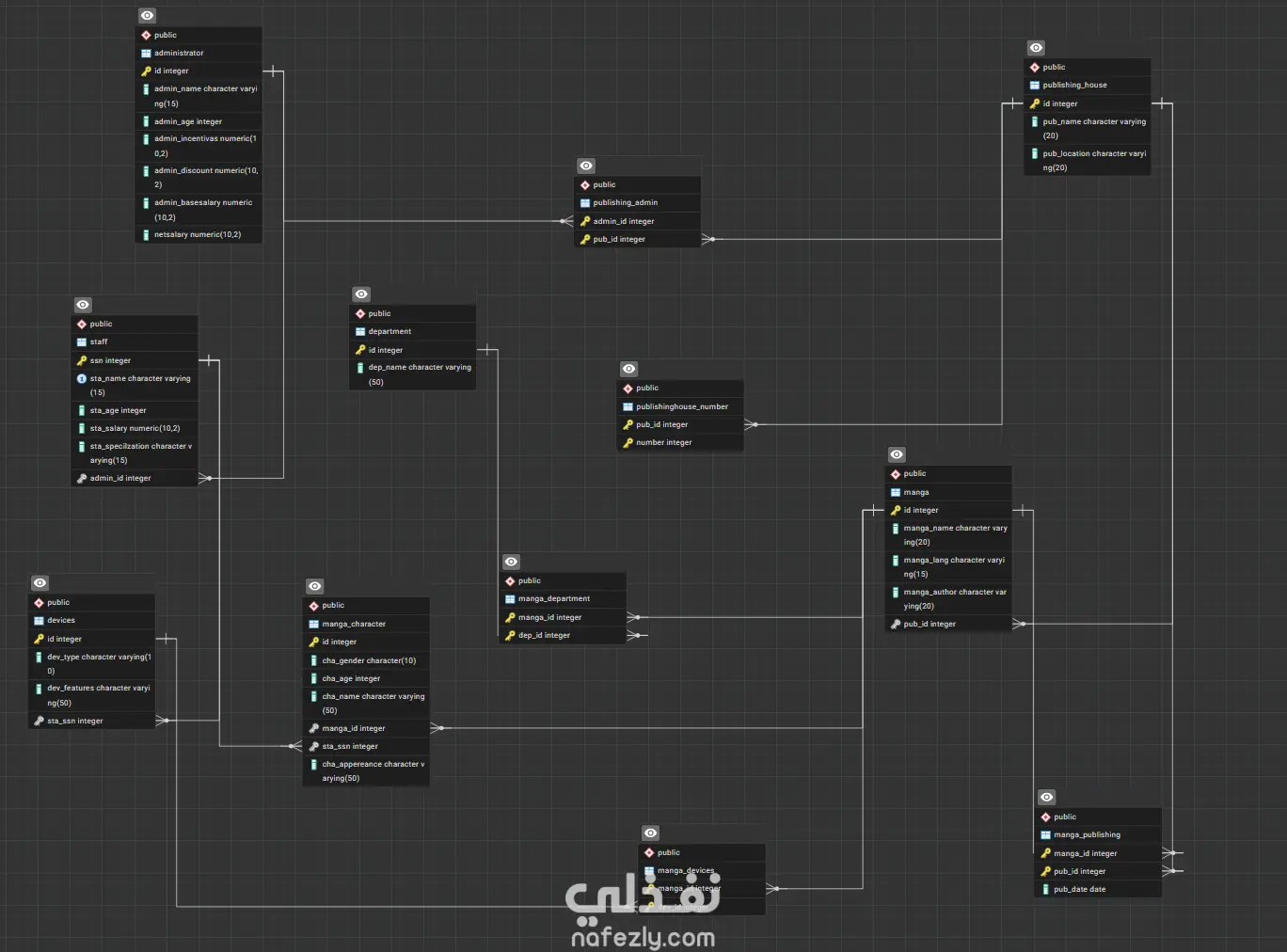 تصميم وبناء قاعدة بيانات متكاملة لإدارة العمليات التشغيلية داخل استوديو أنميشن، تهدف إلى تنظيم العلاقة بين الكوادر البشرية، الأصول التقنية، وعمليات إنتاج المانجا والرسوم المتحركة. يركز المشروع على هيكلة البيانات لضمان تدفق العمل (Workflow) بين المصممين، المحركين، والإدارة بشكل آمن ومنظم. أبرز الخصائص والحلول التقنية المنفذة: إدارة الموارد البشرية (Staff & Admin): بناء نظام متطور لإدارة الموظفين يتضمن حساب الرواتب الصافية (Net Salary) تلقائياً، مع تطبيق قيود (Constraints) لضمان دقة البيانات المالية والوظيفية. إدارة الإنتاج الفني (Manga & Characters): ربط الشخصيات الفنية بأعمال المانجا الخاصة بها، وتحديد المسؤولين عن تنفيذ كل جزء من طاقم العمل، مما يسهل تتبع مراحل الإنتاج. الربط مع دور النشر (Publishing House): نظام متكامل لإدارة التعاقدات مع دور النشر، يشمل تواريخ النشر وعناوين الاتصال وإدارة السجلات الإدارية المشتركة. التحكم في الأصول التقنية (Devices): تتبع الأجهزة والمعدات المستخدمة في الإنتاج وربطها بالموظفين المسؤولين عنها لضمان الرقابة على العهدة التقنية. هيكلية بيانات معقدة: تنفيذ علاقات متعددة (Many-to-Many) بين الأقسام، الأجهزة، والمانجا لضمان مرونة النظام وقابليته للتوسع. الاستعلامات الذكية (Advanced SQL Queries): بناء استعلامات متقدمة لاستخراج تقارير الأداء، وتحليل الرواتب، وتصنيف الأعمال الفنية حسب القسم أو دار النشر. التقنيات المستخدمة: لغة البرمجة: SQL (Microsoft SQL Server). قواعد البيانات: Relational Database Design (Normalized Schema). أدوات الحماية: تطبيق قواعد التحقق (Check Constraints) والمفاتيح الأساسية والأجنبية (PK/FK) لضمان سلامة البيانات (Data Integrity).