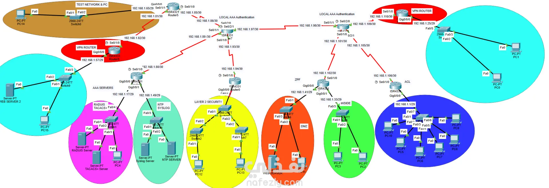 أهلاً بك، متخصص في أمن الشبكات وحاصل على تدريب مكثف من المعهد القومي للاتصالات (NTI). إذا كنت تمتلك شبكة داخلية وترغب في حمايتها من الوصول غير المصرح به أو تأمين تدفق البيانات، فأنت في المكان الصحيح. ما سأقدمه لك في هذه الخدمة (الإعدادات الأساسية): تأمين الوصول (SSH & AAA): إعداد بروتوكولات AAA (Authentication, Authorization, Accounting) لضمان دخول الأشخاص المصرح لهم فقط، مع تشفير كلمات المرور وتفعيل الـ SSH بدلاً من Telnet. جدران الحماية (ACLs & ZPF): بناء قواعد تحكم (Access Control Lists) وفيروال (Zone-Based Policy Firewall) لمنع حركة المرور المشبوهة بين أقسام الشركة. تأمين الطبقة الثانية (Layer 2 Security): حماية السويتشات من هجمات الـ MAC Flooding والـ DHCP Spoofing لضمان استقرار الشبكة. تقسيم الشبكة (VLANs): عزل الأقسام الحساسة عن باقي الشبكة لزيادة الأمان والأداء.