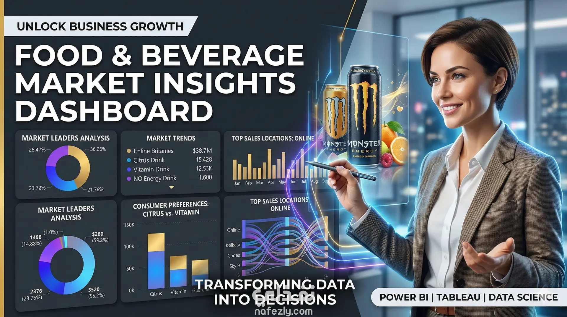 لوحة بيانات تفاعلية لتحليل سوق المشروبات (Power BI).