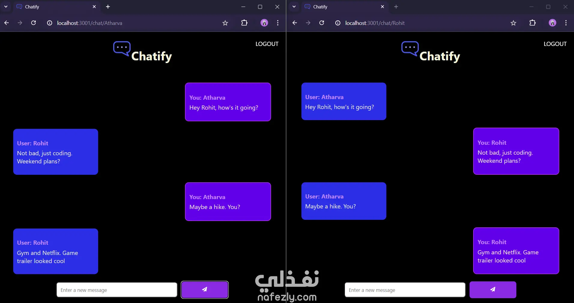 رعة واستجابة لحظية: إرسال واستقبال الرسائل في أجزاء من الثانية، مع تصميم واجهة مستخدم (UI) عصرية تشبه تطبيقات الدردشة الحديثة لتوفير تجربة مألوفة ومريحة للمستخدم.