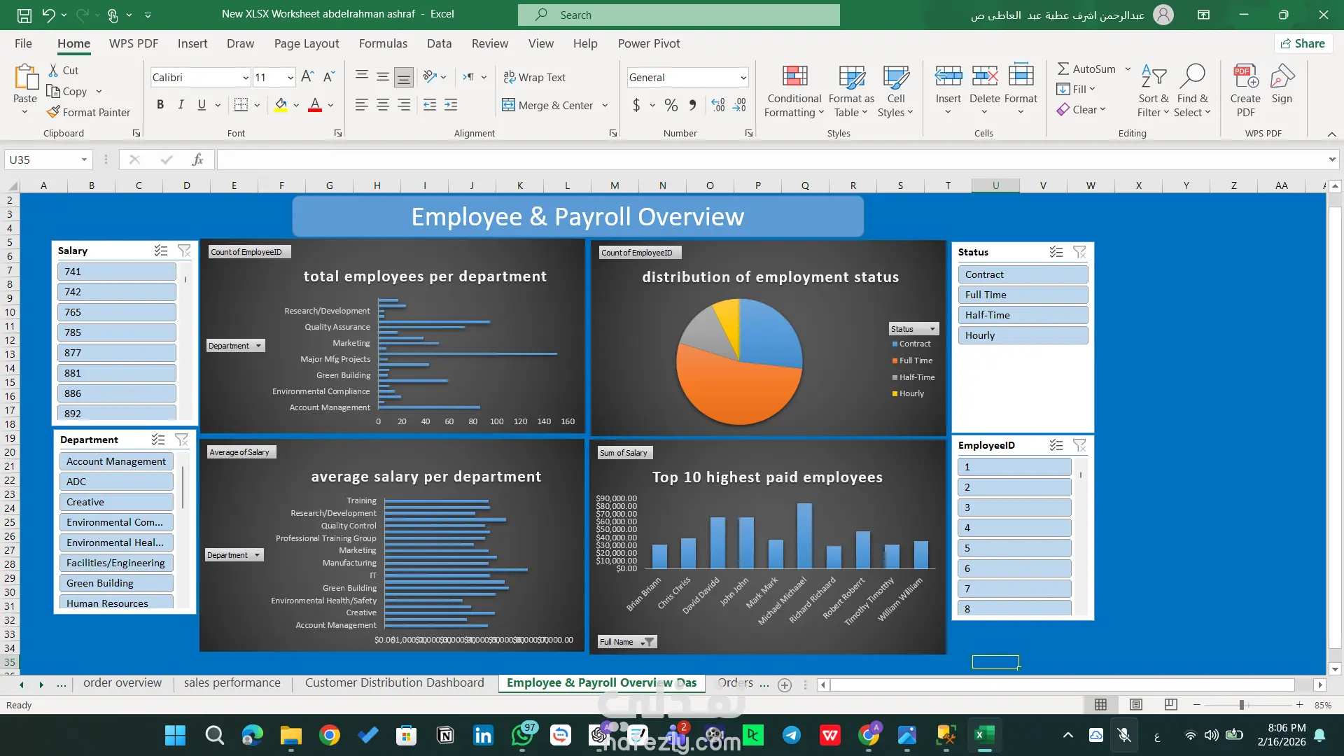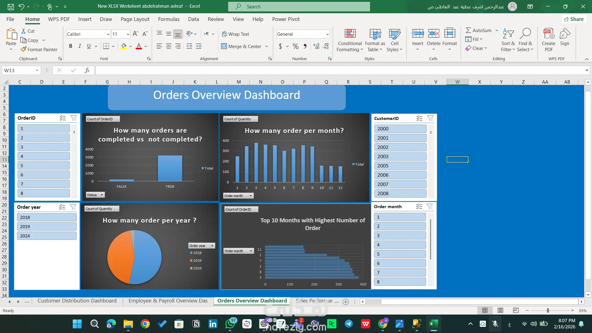في هذا المشروع، قمت بتحويل مجموعة ضخمة من البيانات الخام غير المنظمة إلى "لوحة تحكم" (Dashboard) تفاعلية ونظام بيانات متكامل، مما ساعد في اتخاذ قرارات استراتيجية مبنية على أرقام دقيقة وليس مجرد توقعات. التحليل المتقدم باستخدام Excel: استخدمت المعادلات المتقدمة، الجداول المحورية (Pivot Tables)، و Power Query لربط مصادر البيانات المختلفة وتحليل الاتجاهات (Trend Analysis). تصور البيانات (Data Visualization): صممت واجهات رسومية وتفاعلية توضح مؤشرات الأداء الرئيسية (KPIs) بشكل مبسط يسهل على الإدارة فهمه. النتائج المحققة: تقليل الوقت: أتمتة العمليات المتكررة مما وفر 40% من الوقت المستغرق في إعداد التقارير اليدوية. الدقة: الوصول إلى نسبة خطأ 0% في التقارير المالية والإحصائية. الرؤية: اكتشاف أنماط مخفية في البيانات ساهمت في تحسين كفاءة العمل وتوفير التكاليف.
