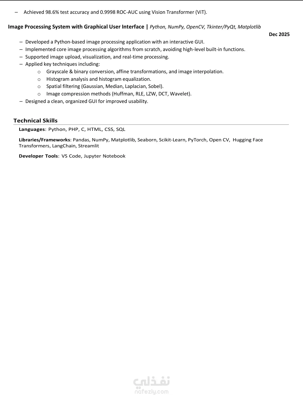 أقدم خدمة إنشاء وتصميم سيرة ذاتية احترافية (CV) تساعدك على التميز وزيادة فرص حصولك على مقابلات عمل. أقوم بكتابة وتنظيم السيرة الذاتية بطريقة احترافية مع إبراز المهارات والخبرات بشكل واضح وجذاب يتناسب مع متطلبات أنظمة التوظيف الحديثة (ATS). الخدمة تشمل: • كتابة وتنسيق CV احترافي • تصميم حديث ومنظم • إبراز المهارات والخبرات بشكل واضح • تحسين السيرة الذاتية لتكون متوافقة مع أنظمة التوظيف ATS • تسليم الملف بصيغة PDF و Word قابلة للتعديل الخدمة مناسبة للطلاب، الخريجين الجدد، وأصحاب الخبرات الباحثين عن فرصة عمل أفضل.