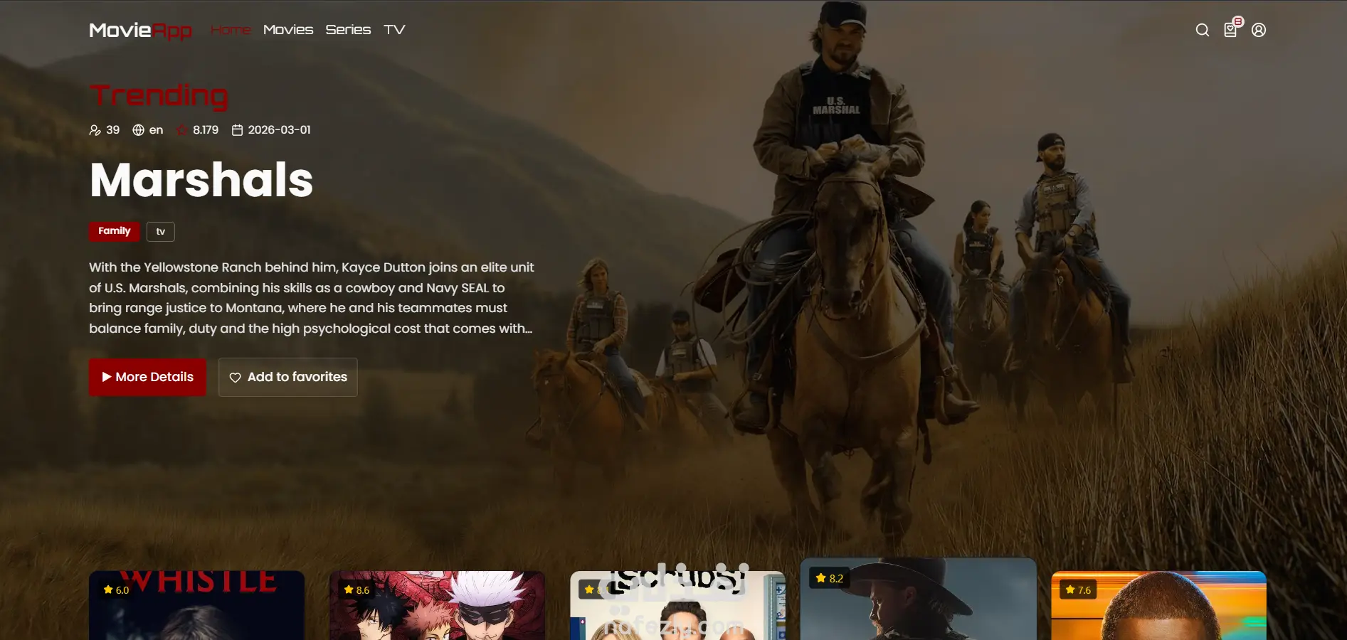المشروع عبارة عن منصة لعرض الأفلام والمسلسلات بواجهة حديثة مع إمكانية البحث عن المحتوى، عرض التقييمات والتفاصيل، ونظام تسجيل دخول للمستخدمين لإدارة المفضلة الخاصة بهم.. تم تصميم الصفحة الرئيسية بحيث تحتوي على قسم للأعمال الأكثر شهرة مع صورة كبيرة للفيلم ومعلومات عنه مثل التقييم والتصنيف وتاريخ الإصدار، بالإضافة إلى أزرار لعرض التفاصيل أو إضافة العمل إلى المفضلة. كما يحتوي الموقع على قائمة للأفلام والمسلسلات يمكن للمستخدم تصفحها بسهولة مع عرض التقييم الخاص بكل عمل. مميزات المشروع: - تصميم UI حديث يشبه منصات عرض الأفلام العالمية - عرض الأفلام والمسلسلات الأكثر شهرة (Trending) - صفحة رئيسية تحتوي على Hero Section للأعمال المميزة - إمكانية البحث عن الأفلام والمسلسلات بسهولة - نظام تسجيل الدخول للمستخدمين - إمكانية إضافة الأعمال إلى المفضلة - عرض تقييم الفيلم وتفاصيله الكاملة - واجهة Responsive تعمل على جميع الأجهزة (موبايل – تابلت – كمبيوتر)