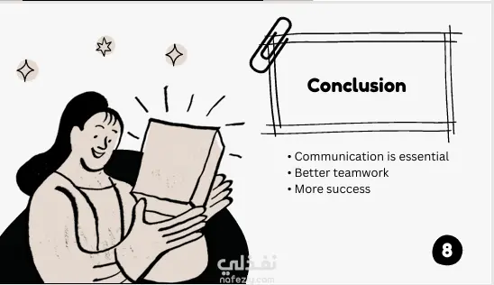 قمت بإعداد عرض تقديمي بعنوان Communication Skills for Developers يوضح مفهوم مهارات التواصل وأهميتها لمطوري البرمجيات داخل بيئة العمل التقنية. يتناول العرض تعريف التواصل وأنواعه مثل التواصل اللفظي والمكتوب وغير اللفظي، بالإضافة إلى توضيح أهمية التواصل في العمل الجماعي وفهم متطلبات العملاء.