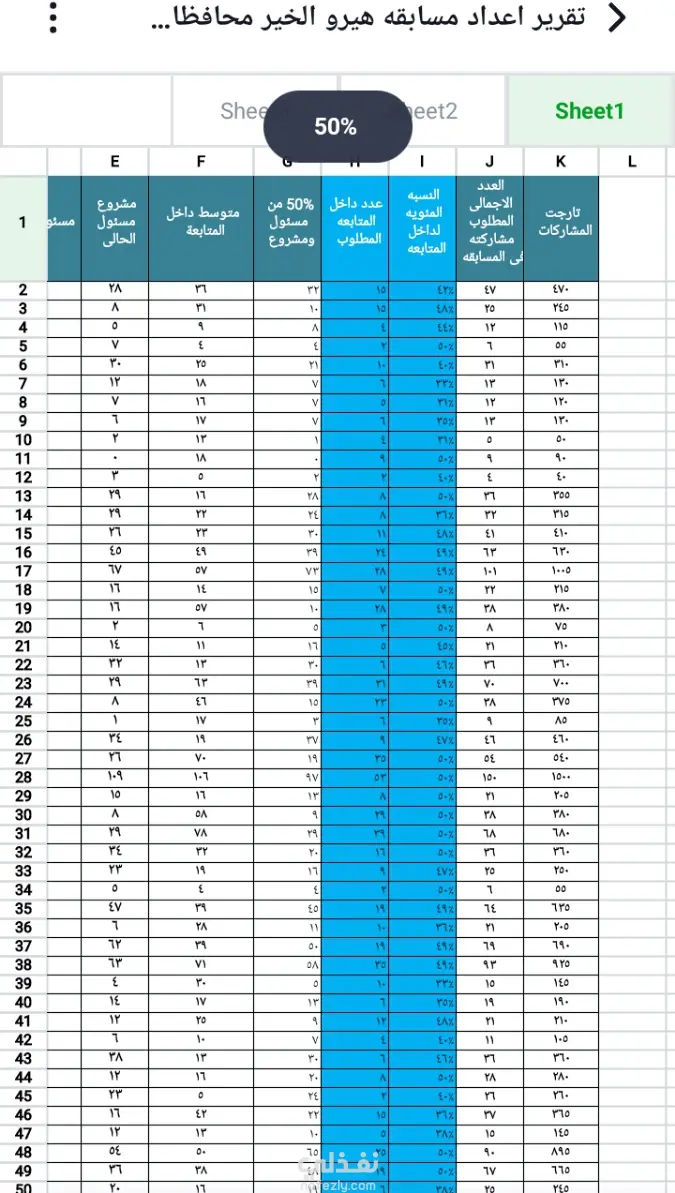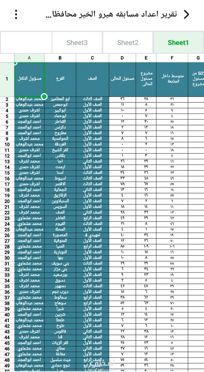 قمت بتفريغ بيانات المشاركين في مسابقة تابعة لأحد الجمعيات الخيرية في ملف إكسل حيث يوضح تفاصيل
