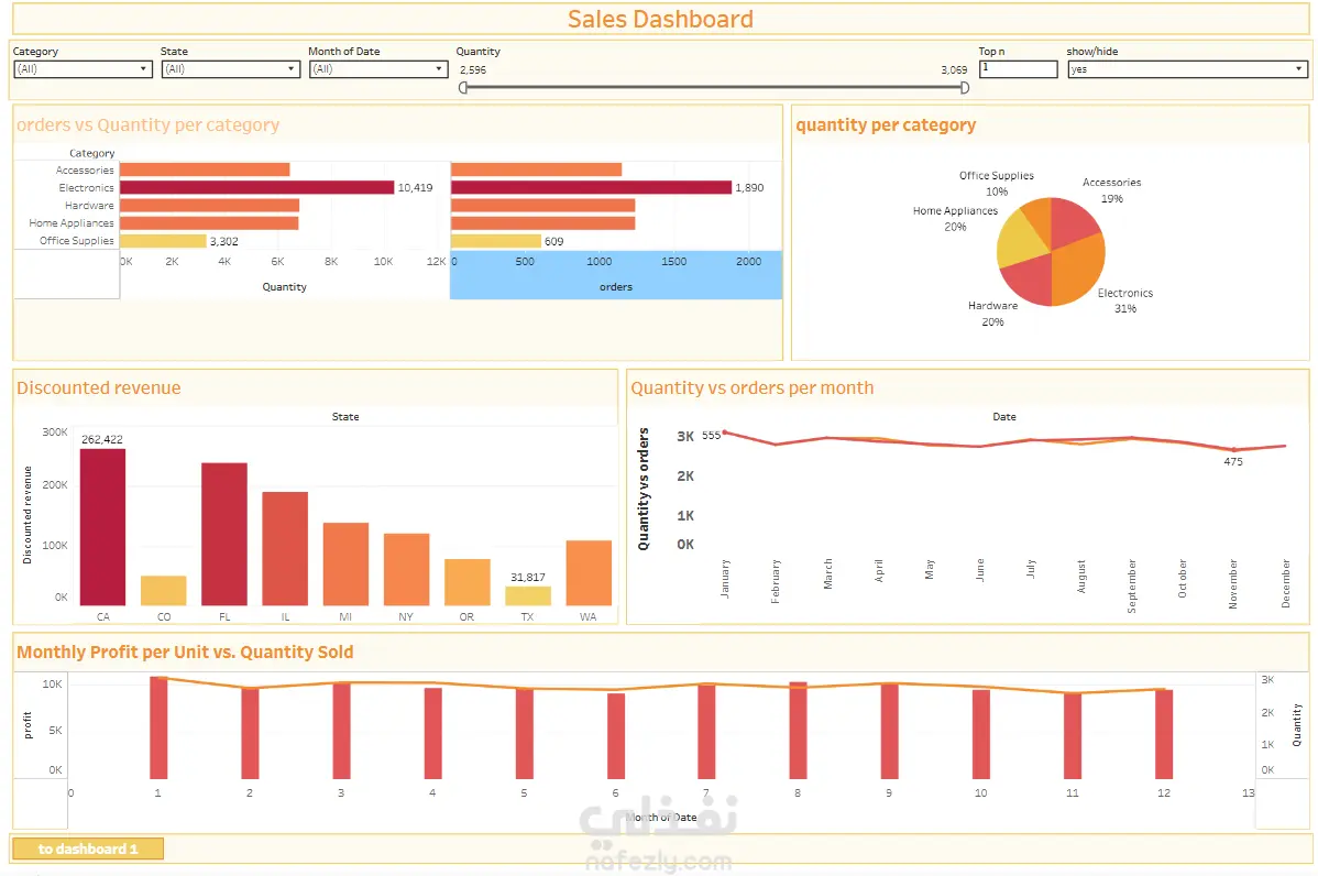 تقدم هذه اللوحة تحليلاً شاملاً لبيانات مبيعات التجزئة بهدف استخراج رؤى تدعم اتخاذ القرارات المبنية على البيانات. تعرض الداشبورد أهم مؤشرات الأداء مثل إجمالي المبيعات، والإيرادات، وهوامش الربح، بالإضافة إلى تحليل اتجاهات المبيعات عبر الزمن. كما توضح أداء الفئات والمنتجات المختلفة، وتوزيع المبيعات حسب الولايات، إلى جانب تحليل الخصائص الديموغرافية للعملاء. تساعد هذه الرؤى في فهم أنماط المبيعات، وتحديد أفضل الفئات أداءً، واكتشاف الفرص التي يمكن أن تساهم في تحسين الأداء وزيادة الأرباح