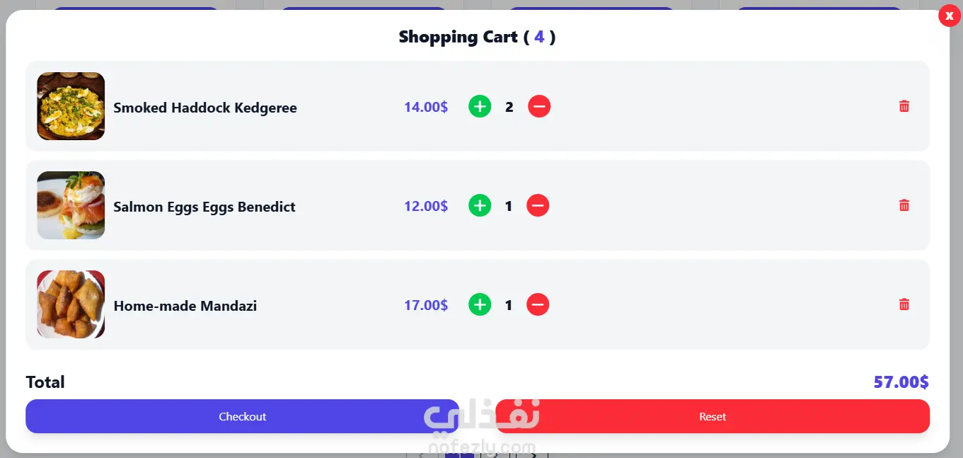 - سلة تسوق ذكية تدعم الإضافة والحذف وتعديل الكميات، مع خاصية الحفظ لضمان عدم ضياع البيانات عند إغلاق المتصفح.