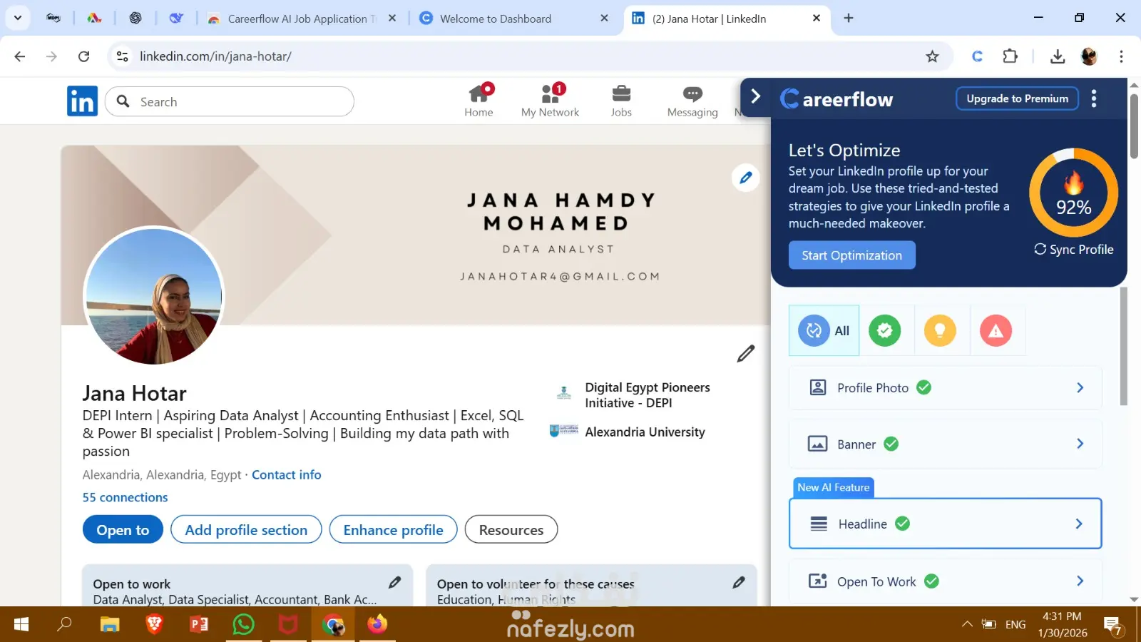 أنا جنى ، أساعدك في تحويل حسابك على LinkedIn إلى صفحة احترافية قوية تعكس مهاراتك وخبراتك وتجذب الفرص المناسبة لك.