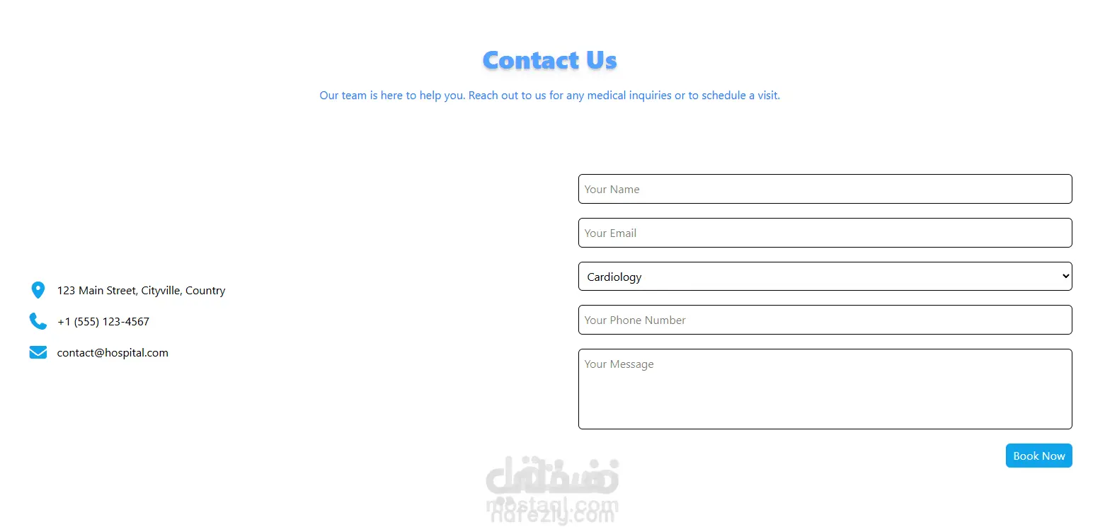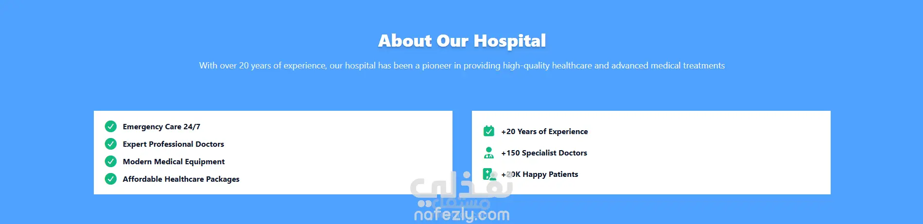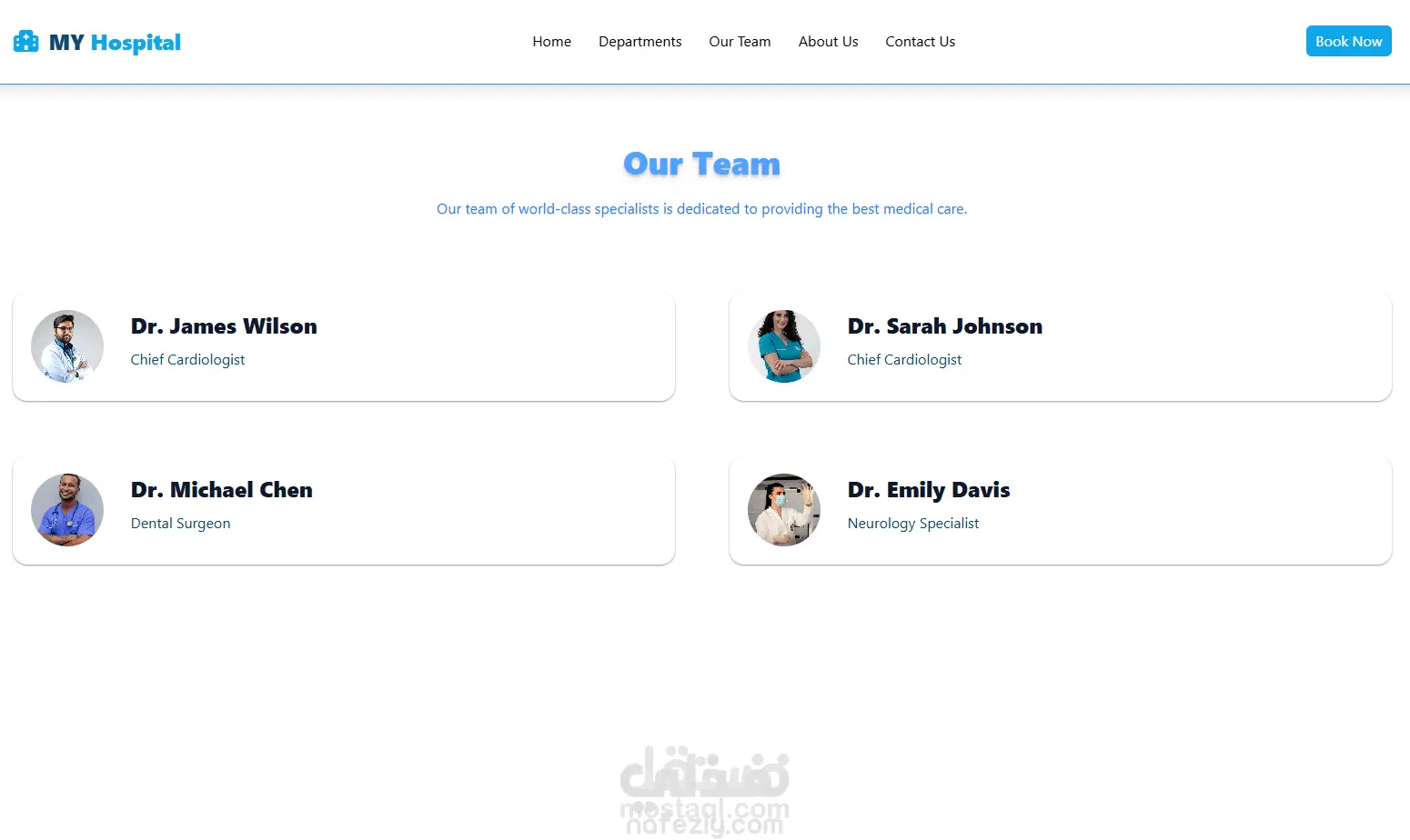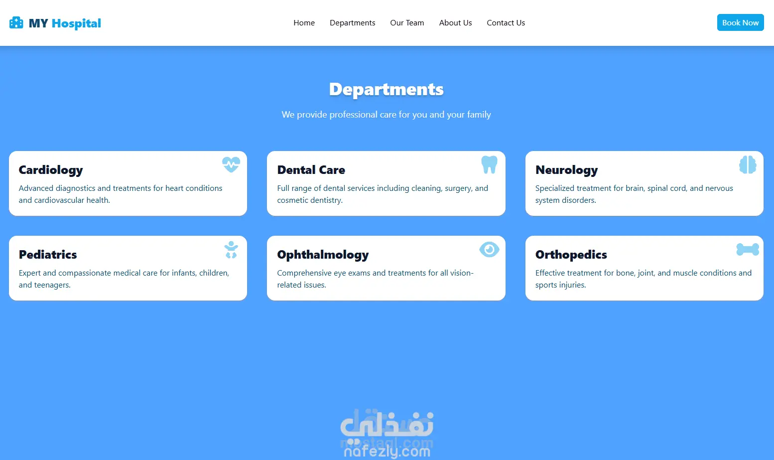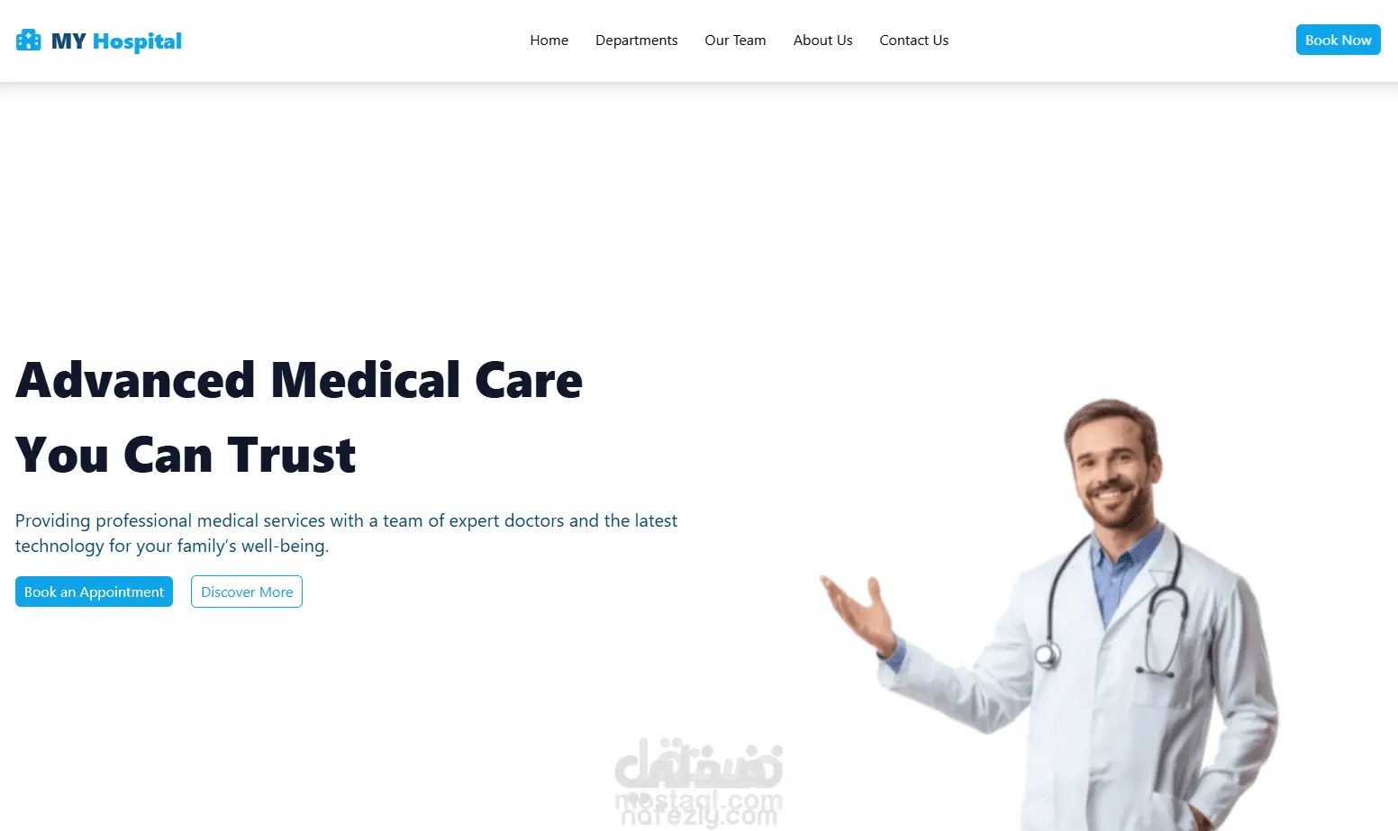 صُمم ليعكس واجهة احترافية لمؤسسة طبية. يركز المشروع على تجربة المستخدم (UI/UX) وسهولة الوصول للمعلومات الأساسية للمرضى. أقسام ومميزات المشروع: هيكلية احترافية: يتضمن المشروع أقساماً أساسية مثل (خدماتنا، فريق الأطباء، من نحن، وقسم التواصل). تصميم عصري متجاوب: الموقع متوافق تماماً مع جميع أنواع الشاشات لضمان تجربة سلسة للمرضى عبر الموبايل والحواسيب. تحسين الأداء: تم العمل على تحسين سرعة تحميل الصفحة لضمان أفضل أداء تقني. واجهة مستخدم نظيفة: التركيز على الألوان المريحة للعين والتنقل السهل بين أقسام المستشفى. التفاصيل التقنية: اللغات: HTML5, CSS3, JavaScript