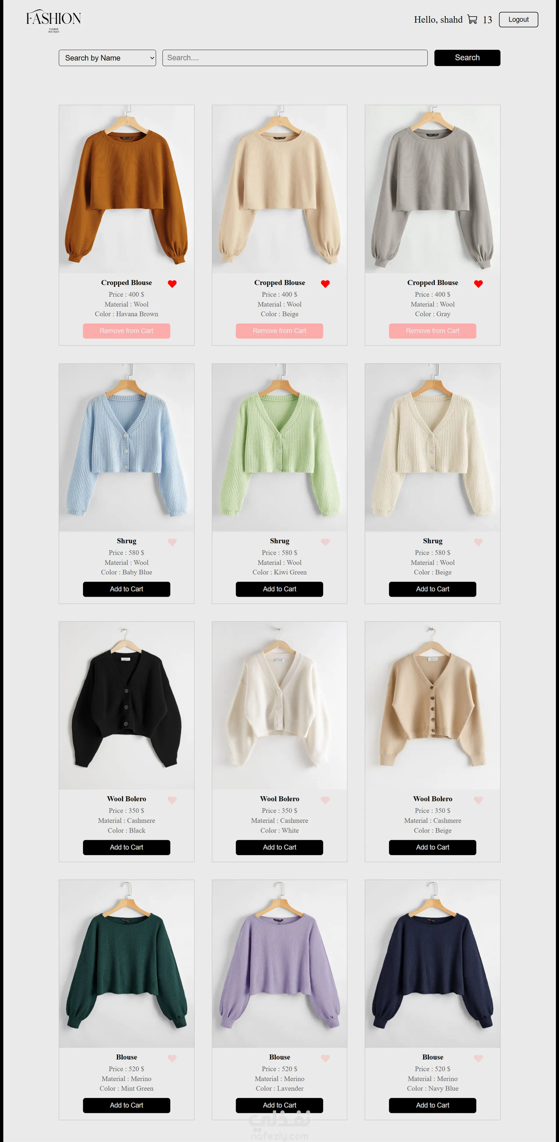 موقع Fashion هو موقع تجارة إلكترونية متكامل لتسويق وبيع منتجات الأزياء النسائية. يتميز الموقع بواجهة جذابة وسهلة الاستخدام مع سلة تسوق مصغرة ونظام للمفضلة.