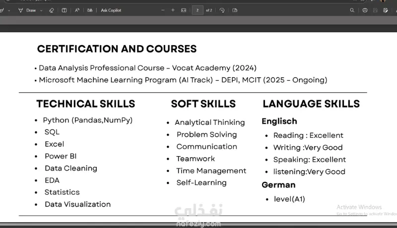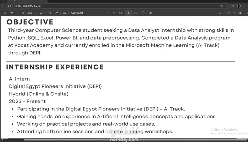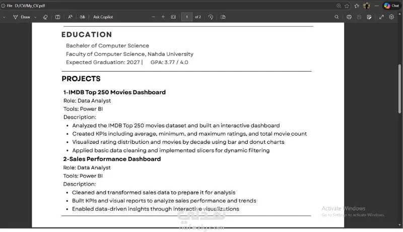 هل تريد سيرة ذاتية احترافية تساعدك في الحصول على فرصة عمل أفضل؟ أنا هنا لمساعدتك في تصميم CV احترافي وجذاب يعرض مهاراتك وخبراتك بطريقة منظمة واحترافية تجذب انتباه أصحاب العمل. سأقوم بتصميم سيرة ذاتية عصرية ومنظمة ومتوافقة مع أنظمة ATS التي تستخدمها الشركات لفرز السير الذاتية، مما يزيد من فرص ظهور سيرتك الذاتية أمام مسؤولي التوظيف. أهتم في التصميم بإبراز: مهاراتك وخبراتك بشكل واضح تنظيم المعلومات بطريقة احترافية تصميم عصري ونظيف يناسب سوق العمل سواء كنت: طالبًا حديث التخرج تبحث عن أول وظيفة ترغب في تحديث سيرتك الذاتية فسأساعدك في الحصول على CV احترافي يعكس خبرتك بشكل مميز.