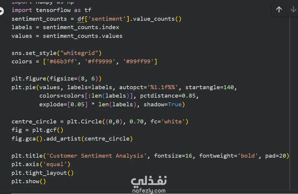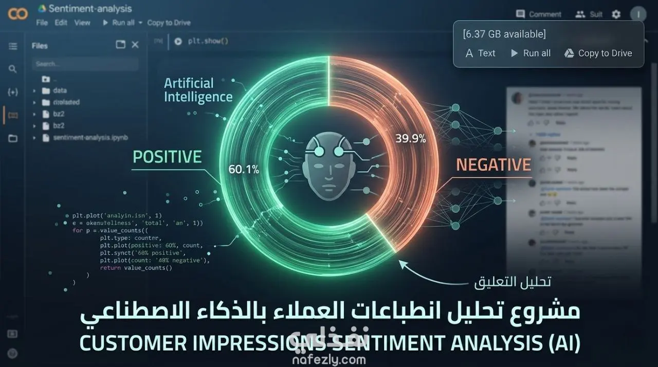 تصنيف دقيق: تقسيم التعليقات إلى (إيجابي، سلبي، محايد) باستخدام موديلات Python المتطورة. تقارير مرئية: رسوم بيانية احترافية (Pie Charts & Bar Charts) توضح نسب الرضا. تحليل الكلمات المفتاحية: استخراج أكثر الكلمات تكراراً في شكاوى أو مدح العملاء. نصائح تحسين: ملخص تنفيذي بناءً على النتائج لتطوير عملك. الأدوات المستخدمة: Python (Pandas, Scikit-learn, Matplotlib, Seaborn).