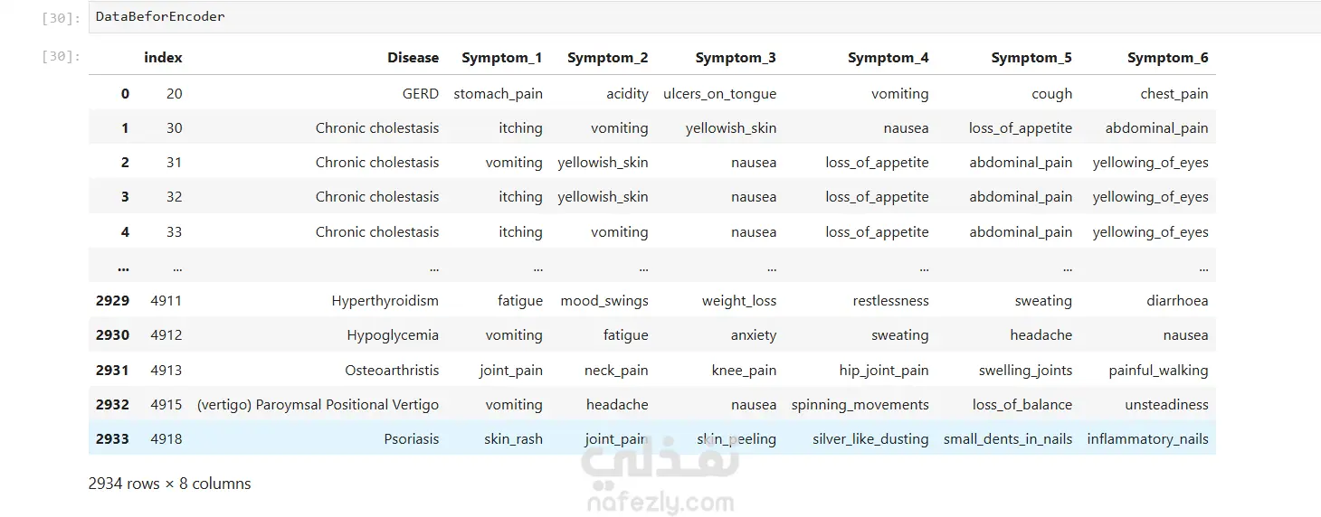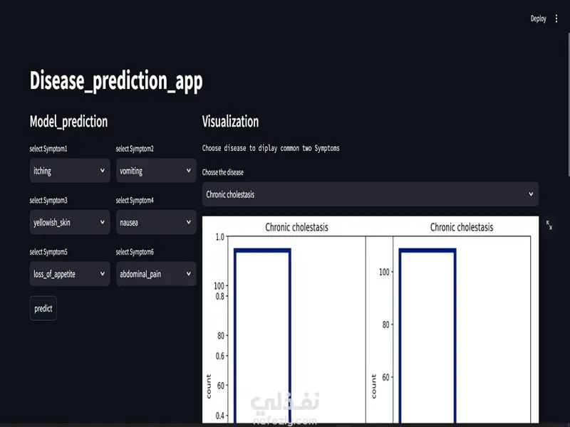 قمت بتطوير تطبيق يعتمد على تقنيات Machine Learning / Deep Learning لتحليل الأعراض التي يُدخلها المستخدم، ثم التنبؤ بالمرض المحتمل بدقة عالية، مع اقتراح الأدوية المناسبة لكل حالة. كيف يعمل النظام؟ يقوم المستخدم بإدخال الأعراض التي يشعر بها. يقوم النموذج بتحليل البيانات باستخدام خوارزميات ذكاء اصطناعي مدربة مسبقًا. يتم عرض: المرض المتوقع بنسبة دقة وصف مختصر للحالة التقنيات المستخدمة: Python Machine Learning / Deep Learning Data Preprocessing & Feature Engineering نموذج تصنيف متعدد الفئات