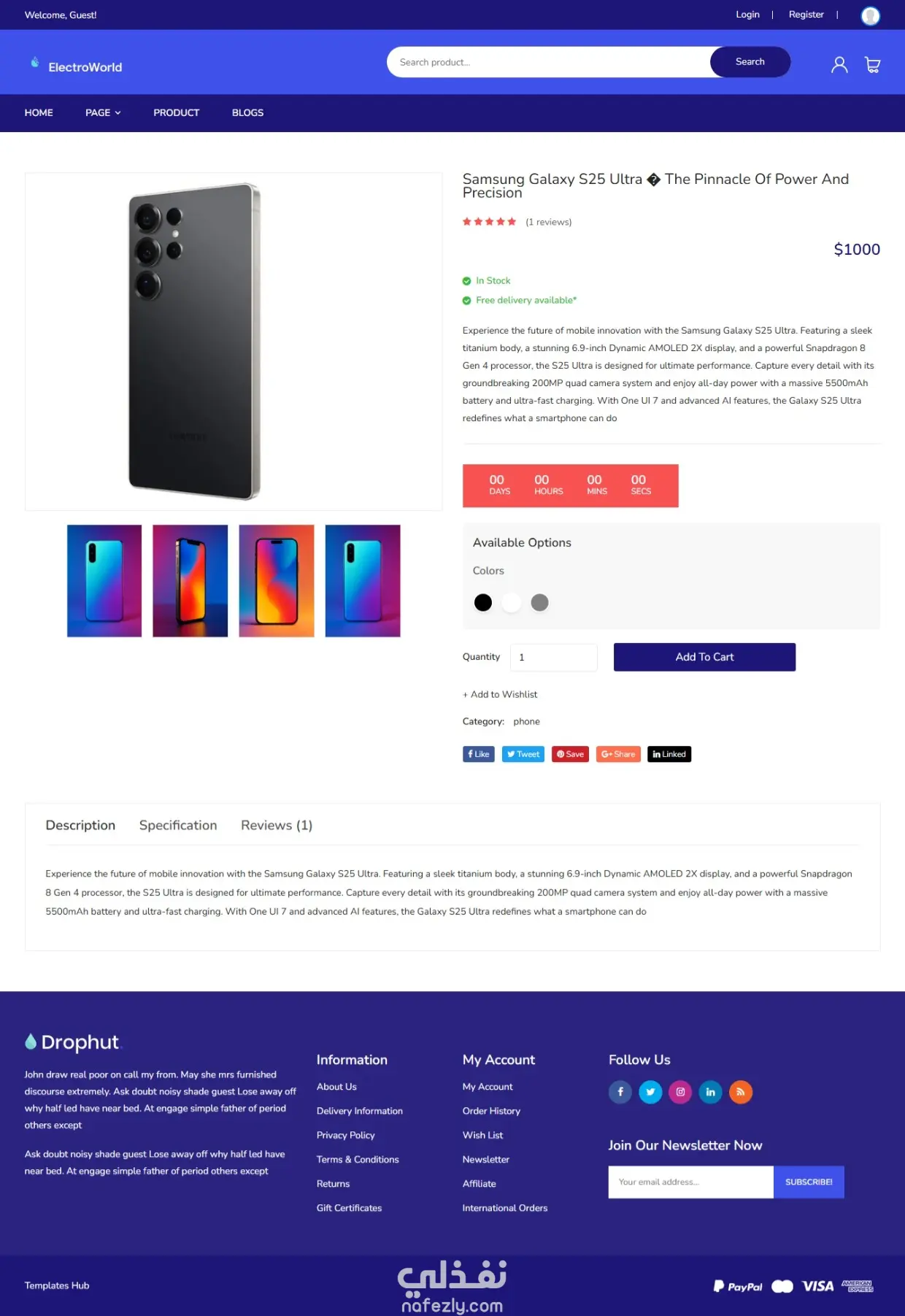تتضمن لوحة تحكم لإدارة المنتجات والطلبات والمستخدمين مع تقارير مبيعات، وخيار الدفع عند الاستلام مع جاهزية لربط بوابات دفع مستقبلًا.