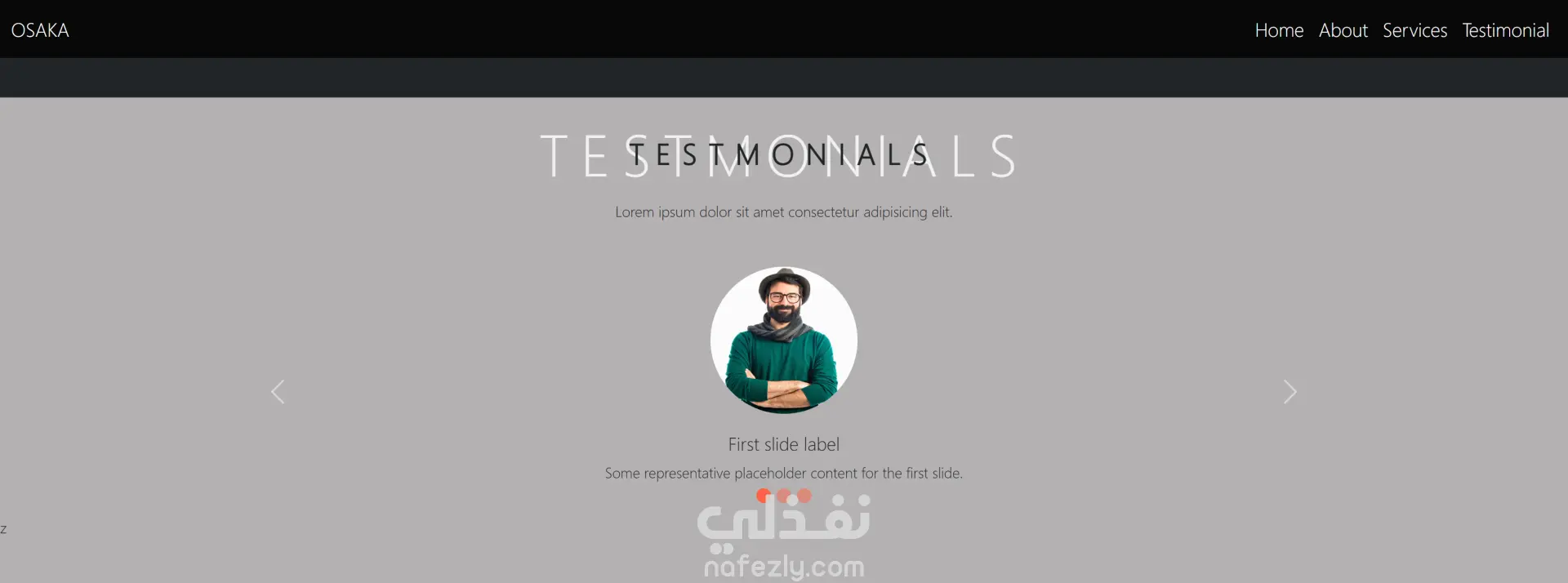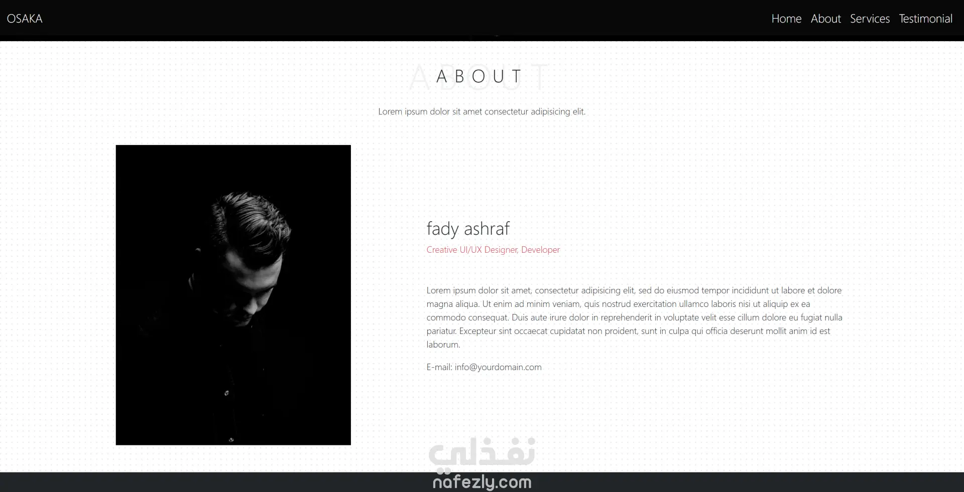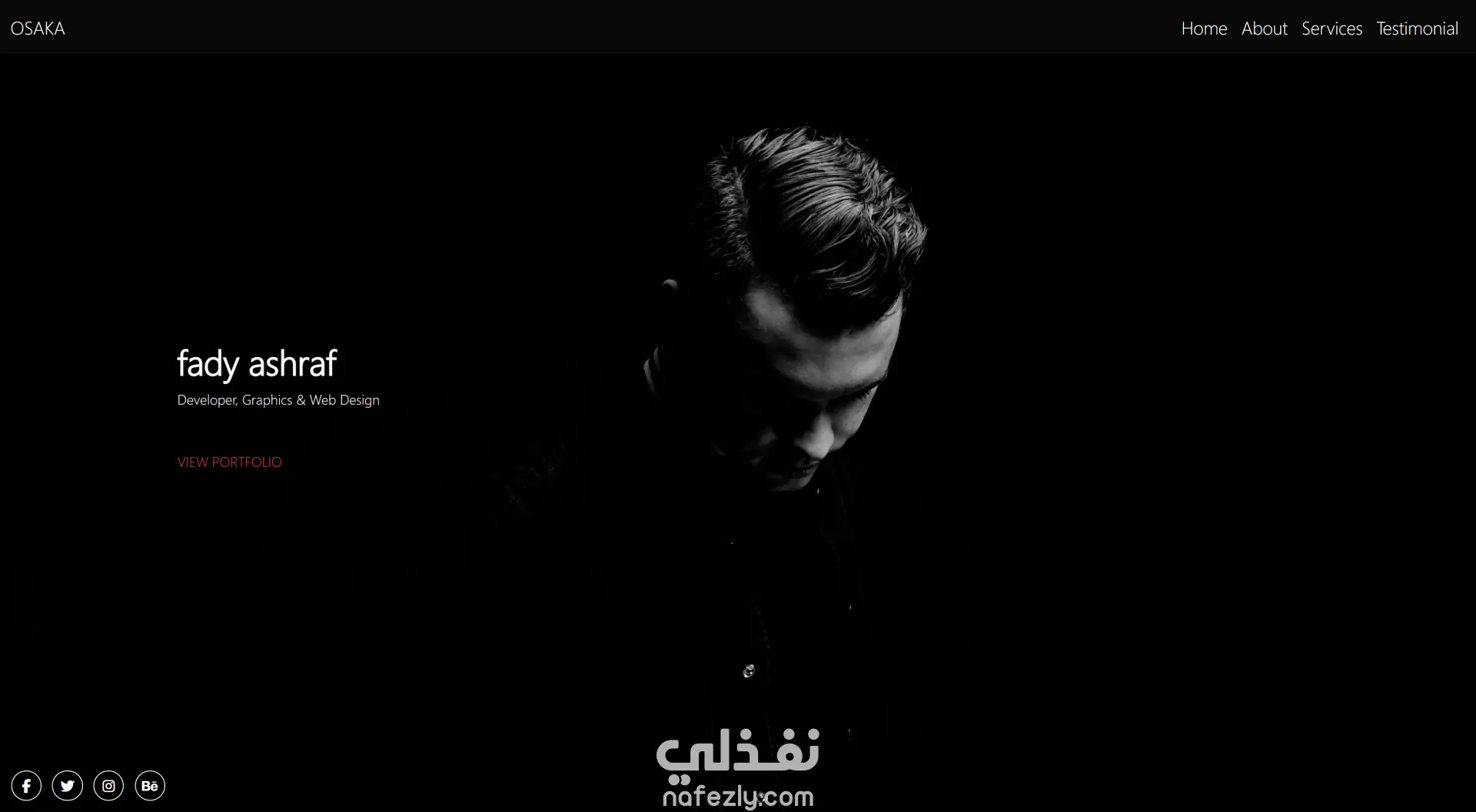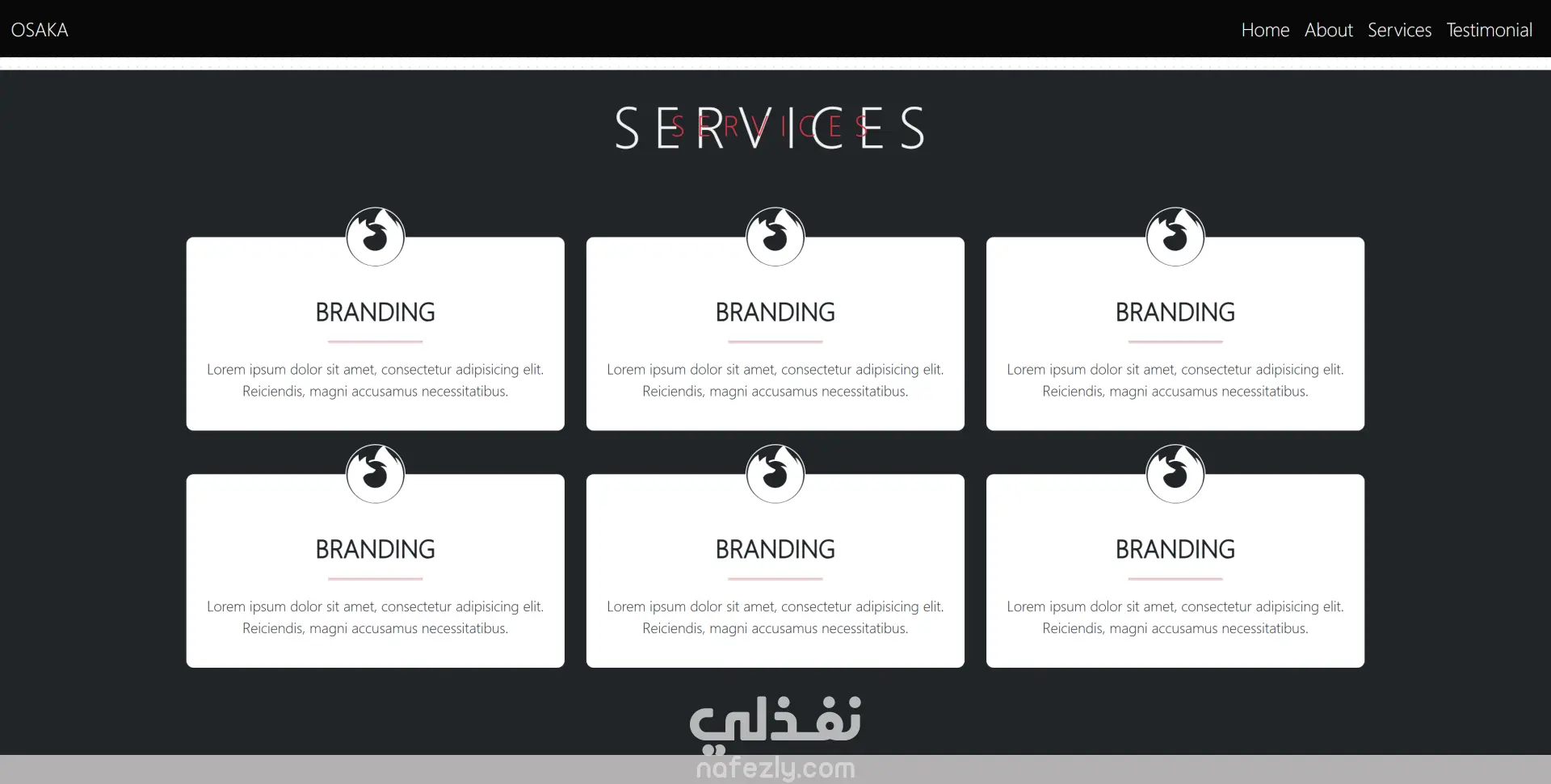 تم الاهتمام بتجربة المستخدم (UI/UX) وبساطة التنقل بين الأقسام مثل: Home، About، Services، Testimonial مع إضافة روابط التواصل الاجتماعي لزيادة التفاعل.