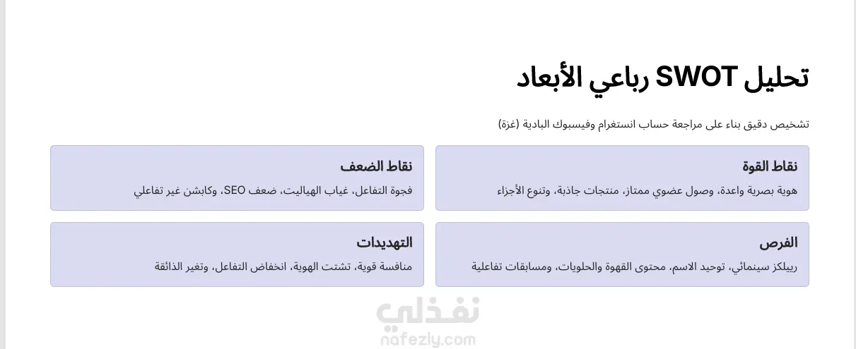 سوف أقدم لك تحليلاً رباعياً (SWOT Analysis) متكاملاً في ملف PDF يتضمن :