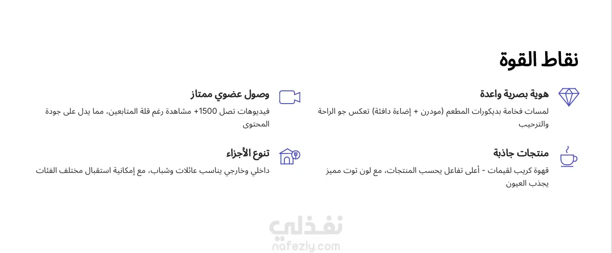- نقاط القوة (Strengths) :التى يتميز بها مشروعك والعناصر التي تميزك وتمنحك الأفضلية في السوق.
